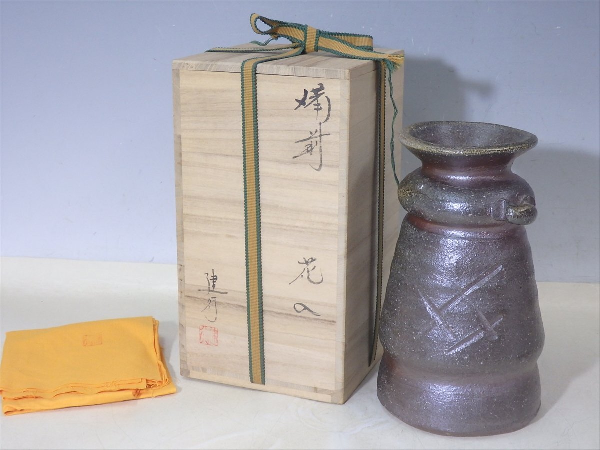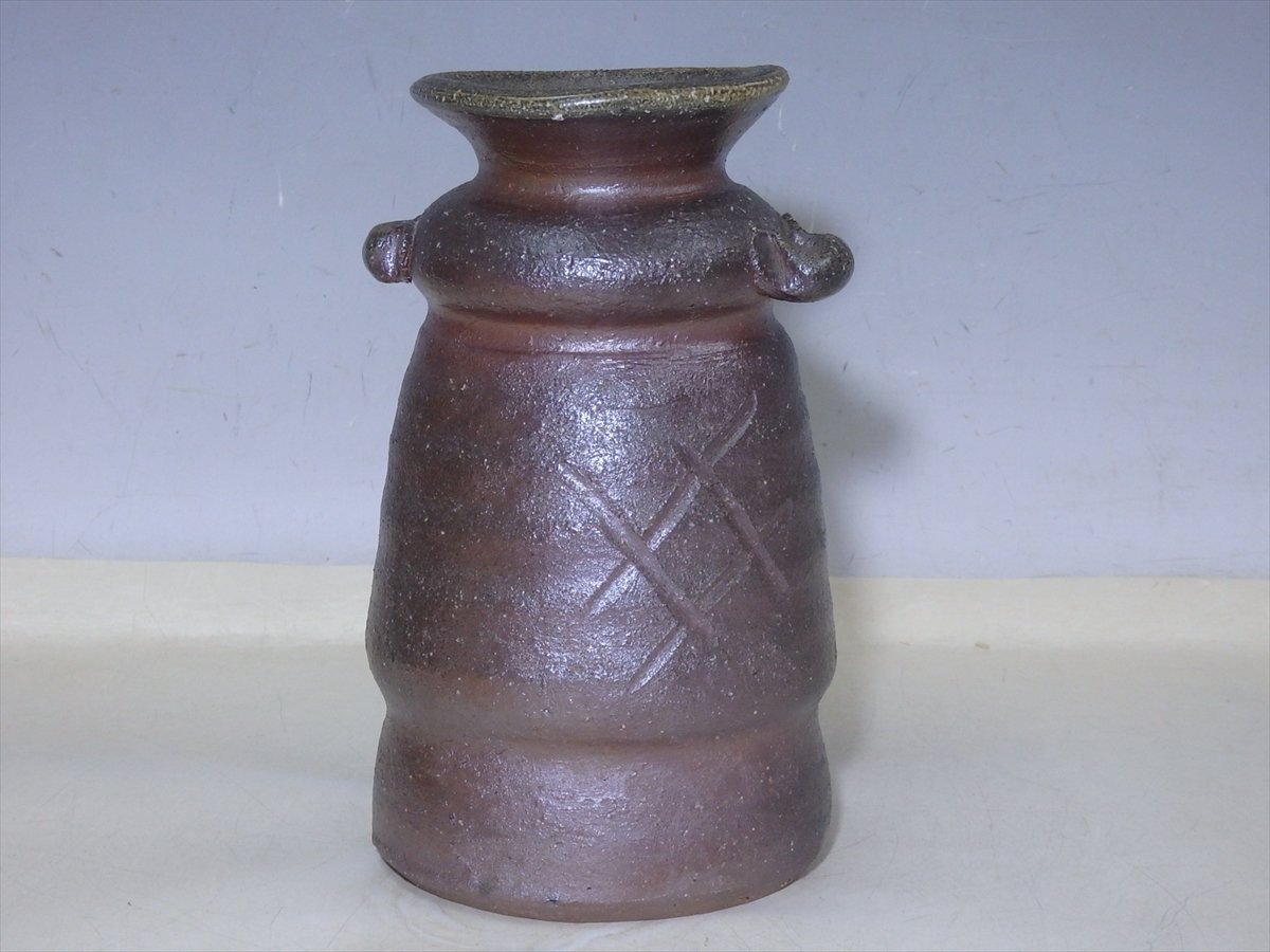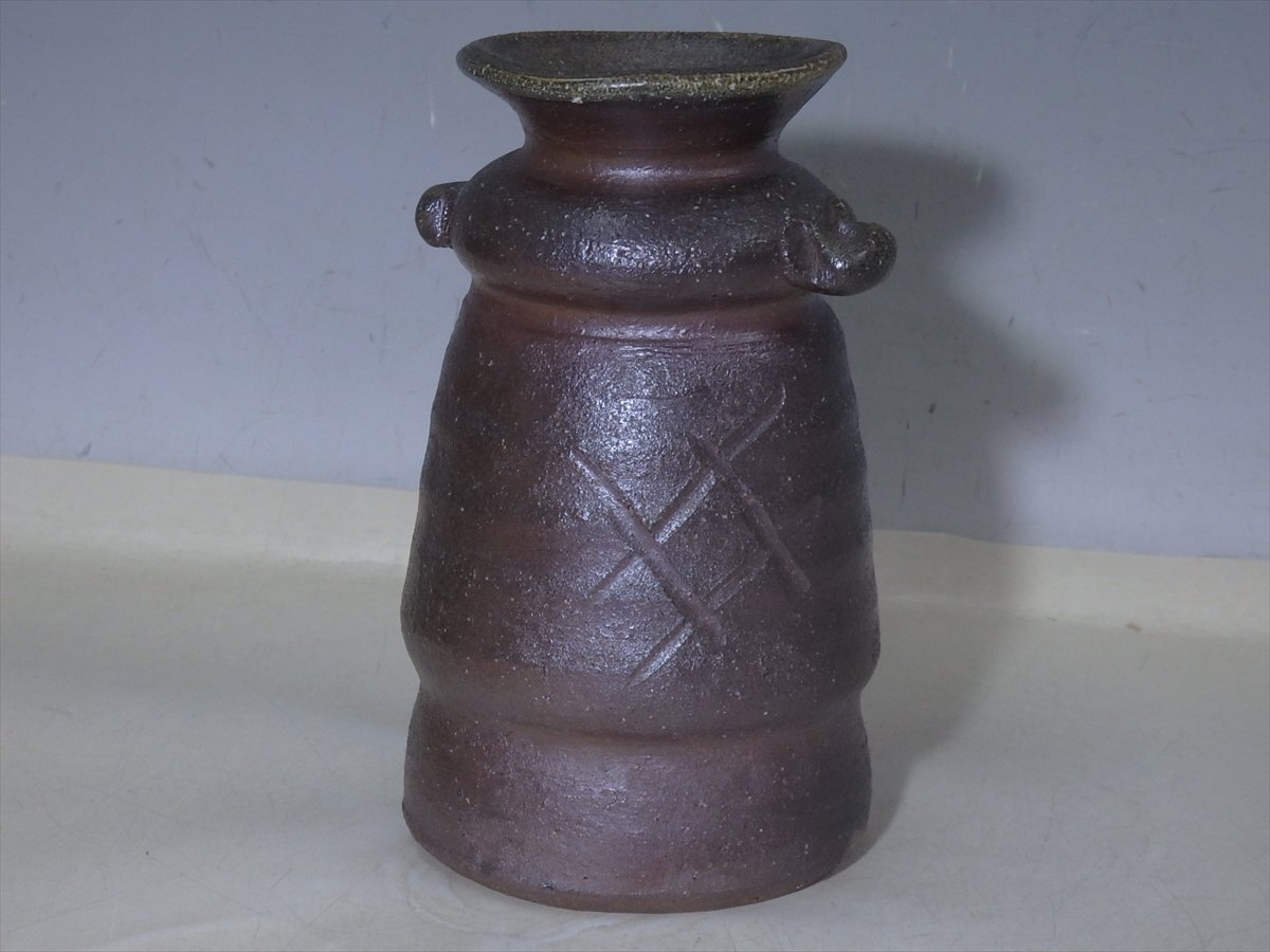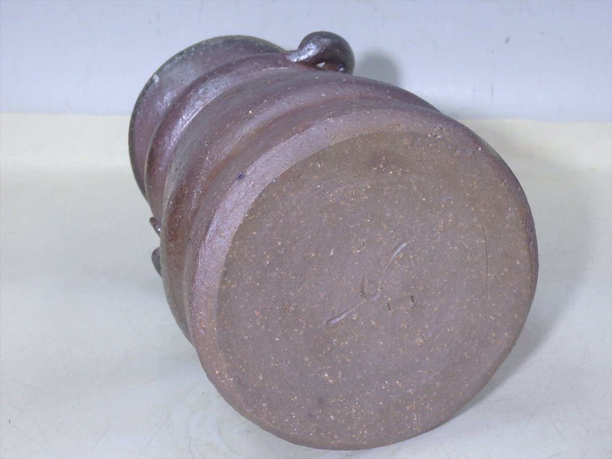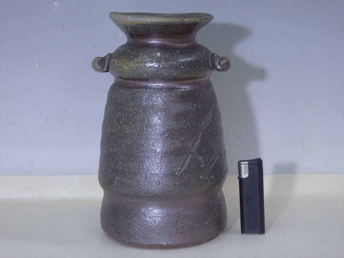 ★状態良好!乗松建行【備前花入 共箱】どっしり重厚! 胴径14cm 高さ24cm 口径約5cm セール!