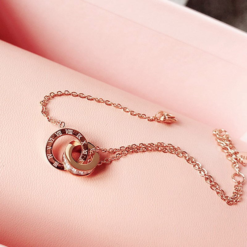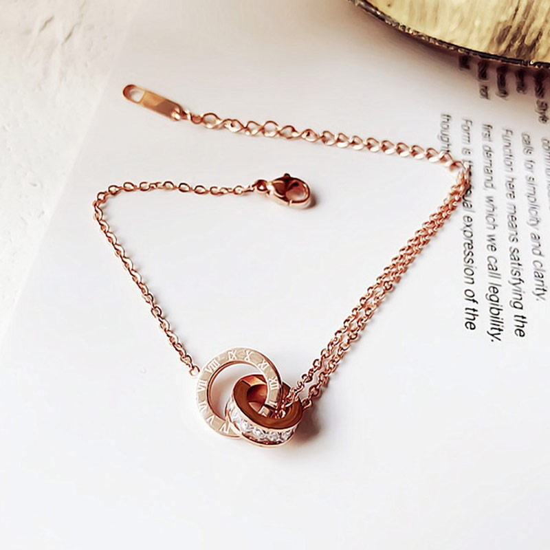 ローマ数字&高級czダイヤモンドがキラキラ光る★ローズゴールド ブレスレット