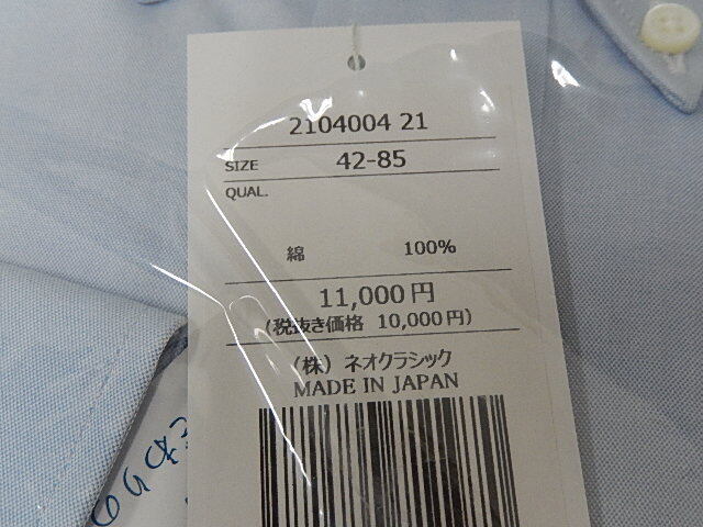 へ)  新品 未使用品 長袖 ワイシャツ  ビジネスシャツ 42-85 メンズ 日本製 綿100%