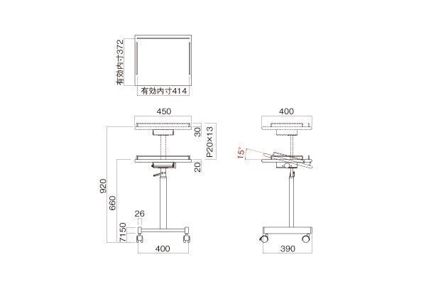 ●外形寸法:幅 450 × 奥行き 400 × 高さ 660~920 (mm) 質量:約9kg