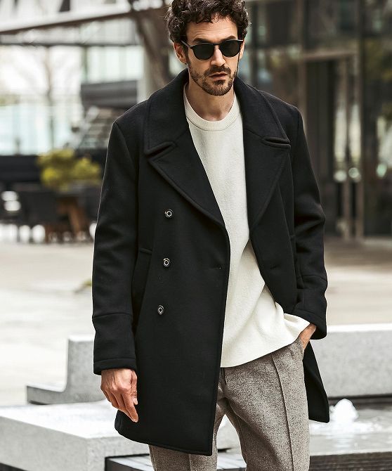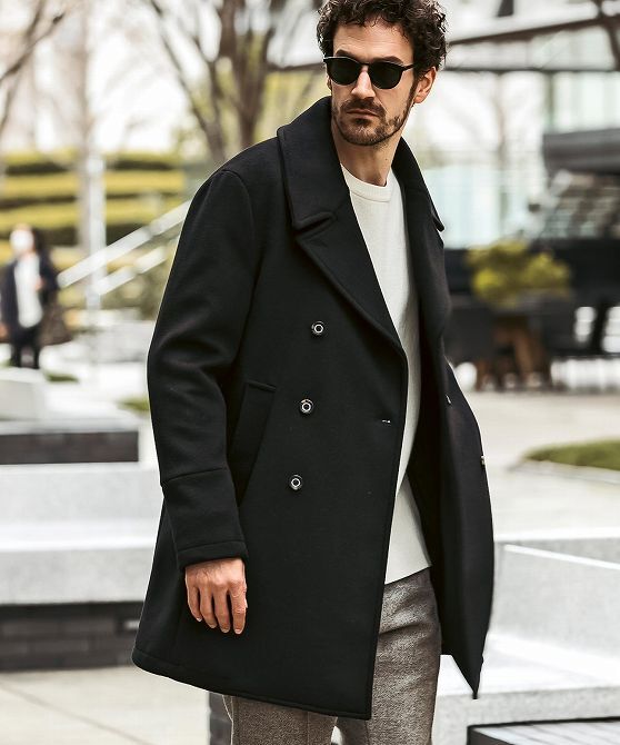 1PIU1UGUALE3 RELAX 滑らかで上質なウールファブリックを使用したダブルコート。保温性・柔軟性に優れた羊毛がしなやかで暖かい着心地を齎します。