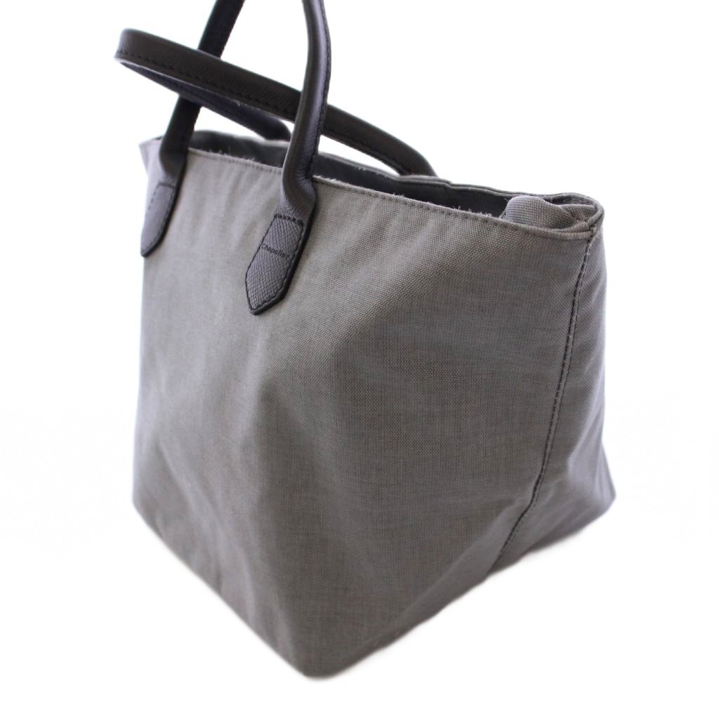 エルベシャプリエ Herve Chapelier トートバッグ ハンドバッグ 舟型 ナイロン レザー 切替 バイカラー グレー 黒 ブラック