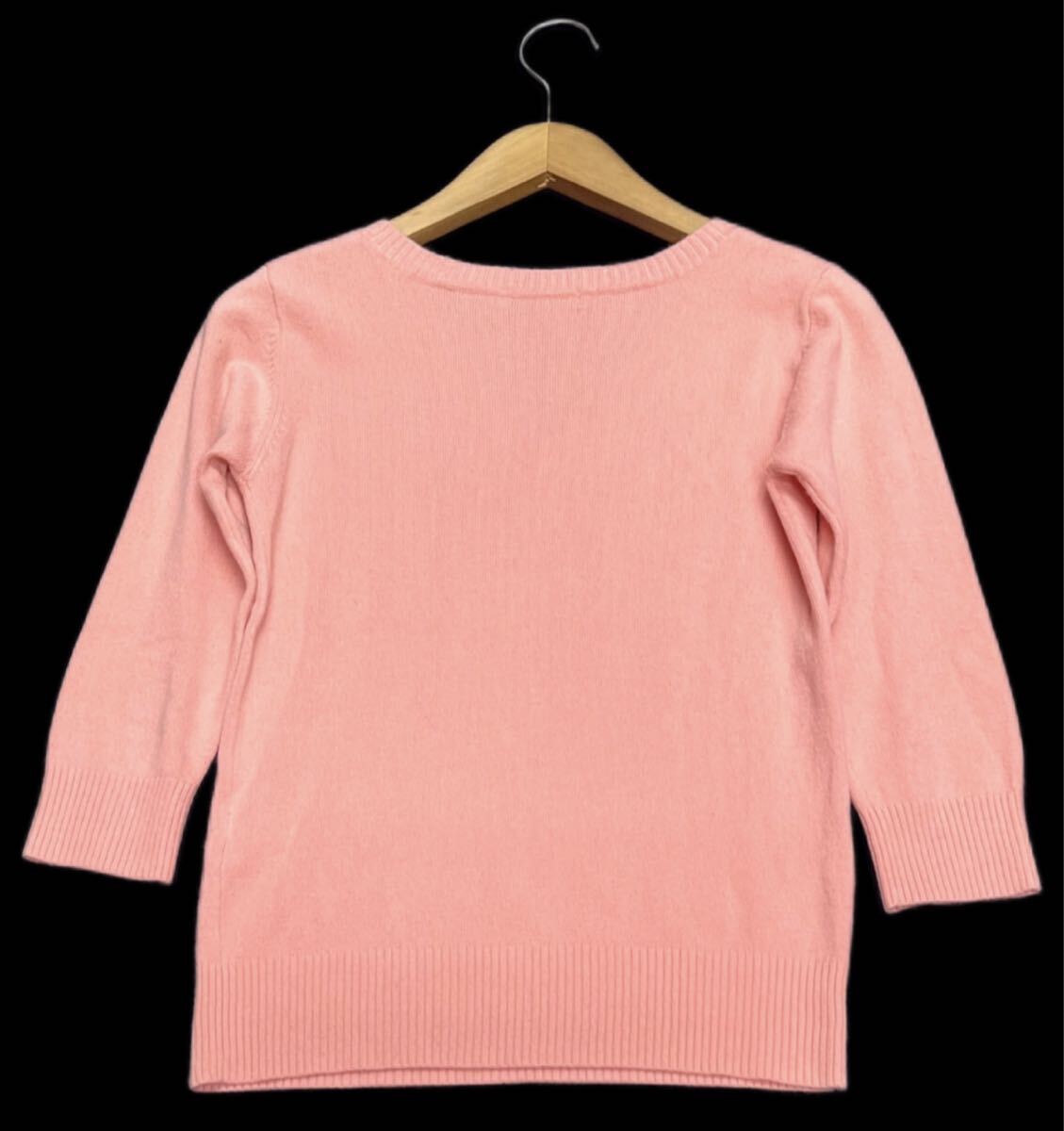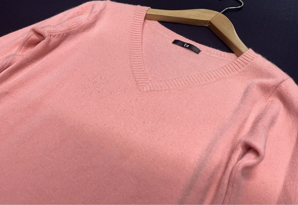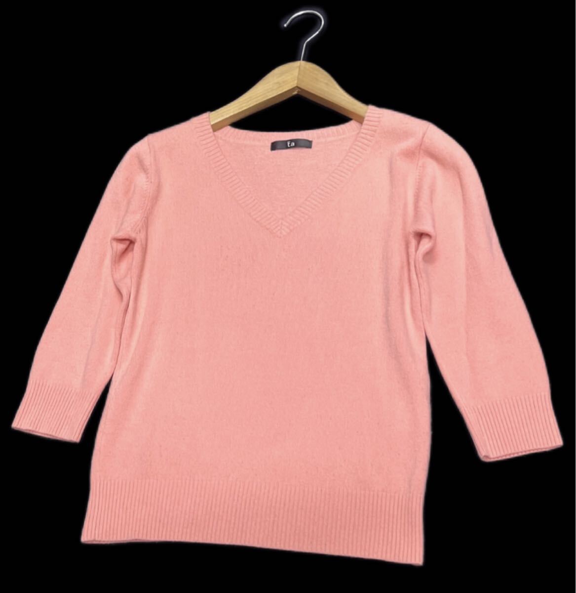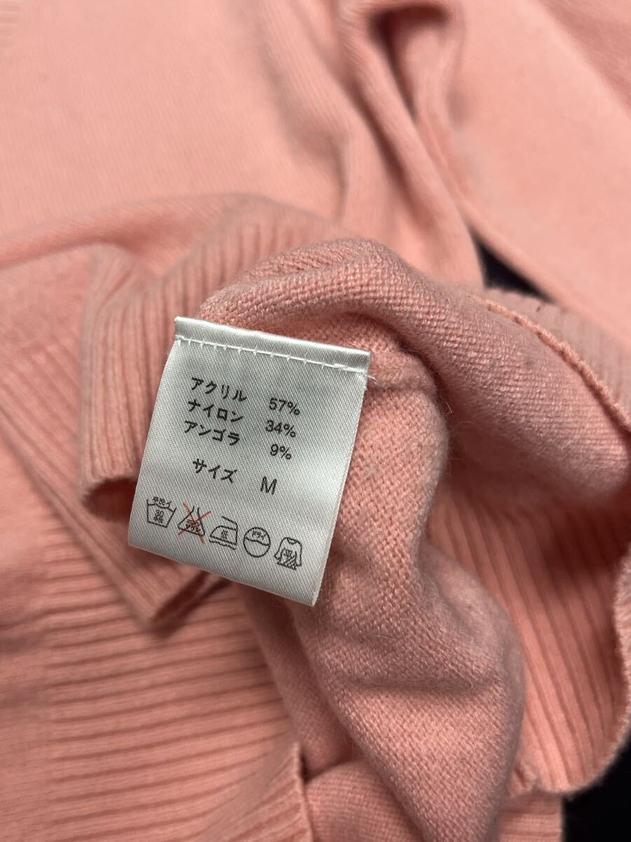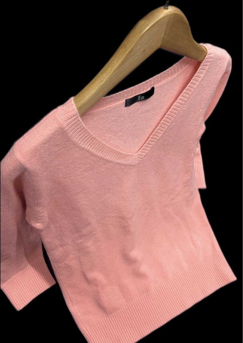 ta★アトリエヤマモト(M)アンゴラ混 Vネック 七分袖 ニット セーター/ピンク系