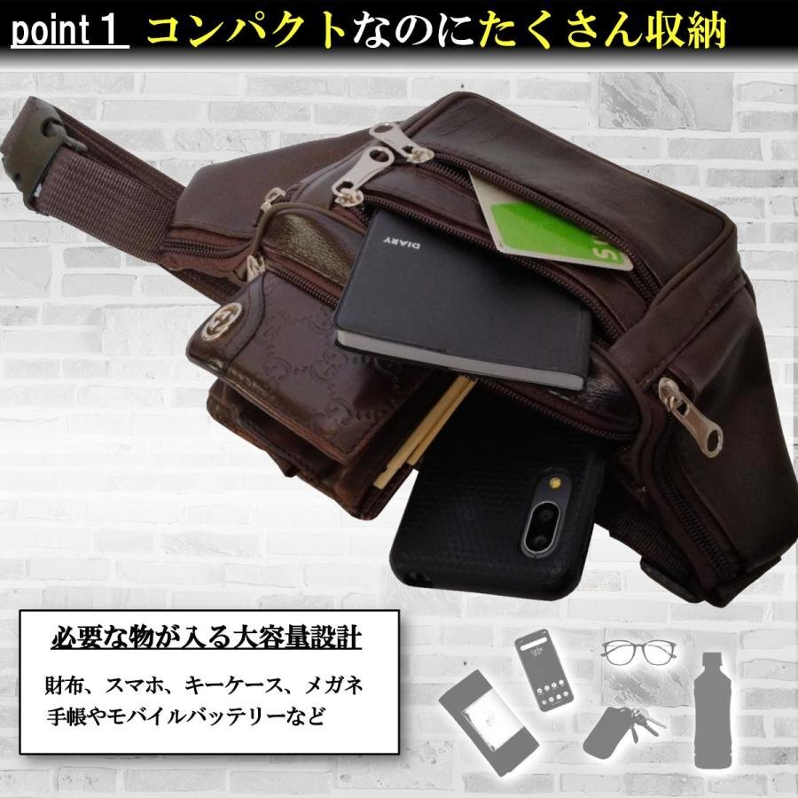 ボディバッグ メンズ 本革 革 小さめ レザー 大容量 ウエストポーチ ウエストバッグ 牛革 本皮 斜めがけ ブラック