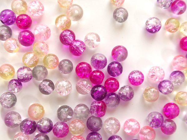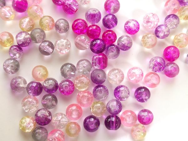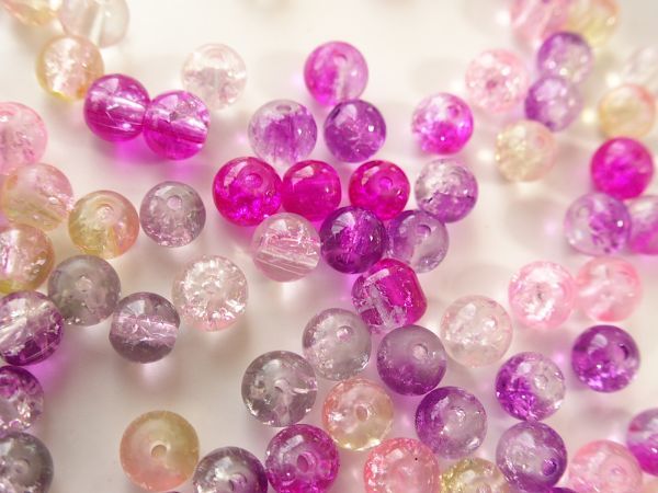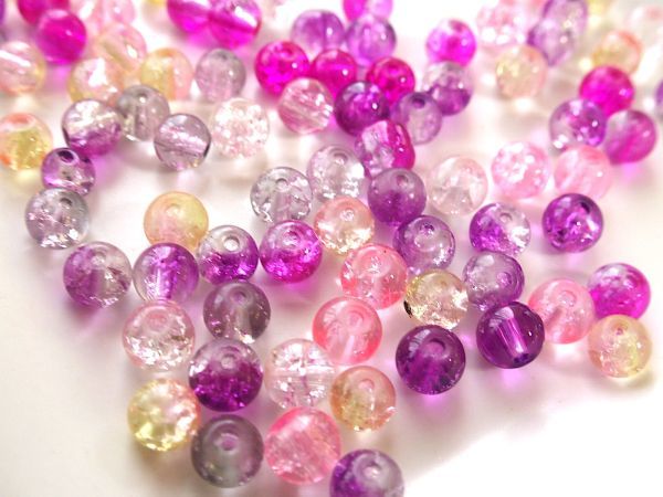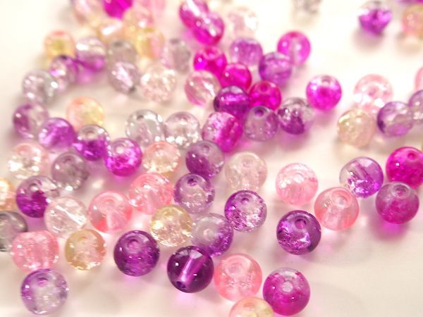 即決☆ 6mm 50個 クラックガラスビーズ ミックス ピンク ★ パーツ ハンドメイドピアス に 資材