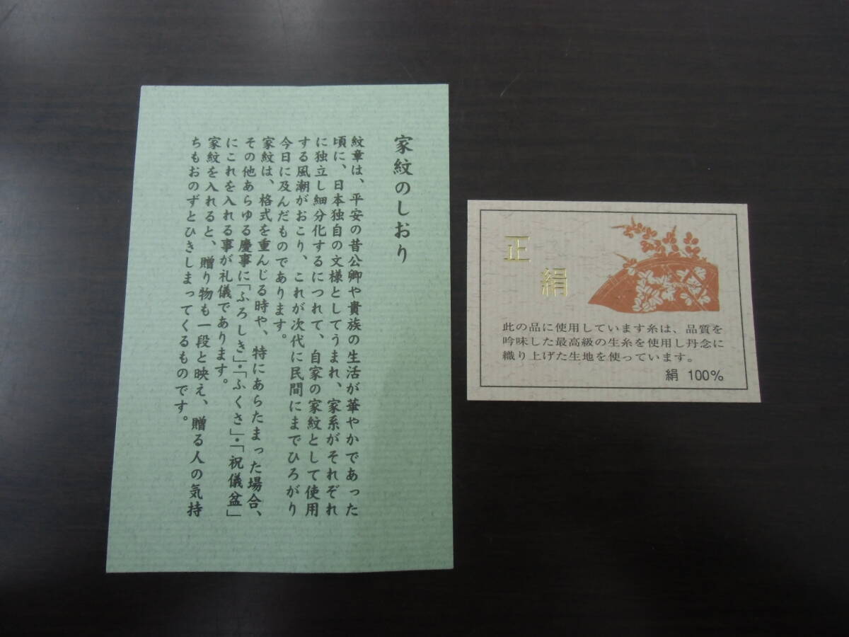 | 商品説明 | 御冨久紗 家紋入 袱紗 正絹 丸に片喰 房付き 37.5×34cm 箱入りです。 ・未使用保管品です。 ・保管中にできる僅かなキズ汚れ等がある場合がございます。 ・サイズ:約37.5×34cm 保管品にご理解いただける方のご入札をお願い致します。 出品する際にチェックしていますが、見落し等がある場合があります。 状態などは個人の主観ですので、神経質な方はご入札をお控えください。 詳しい状態などは、画像を参考に判断してください。 ※実際の色あいと、画像の色あいが異なる場合がございますので、あらかじめご了承頂いた方のご入札をお願い致します。 お探しの方はお見逃しなく。 この機会にぜひ、どうぞ! ノークレーム、ノーリターンとなります。 |