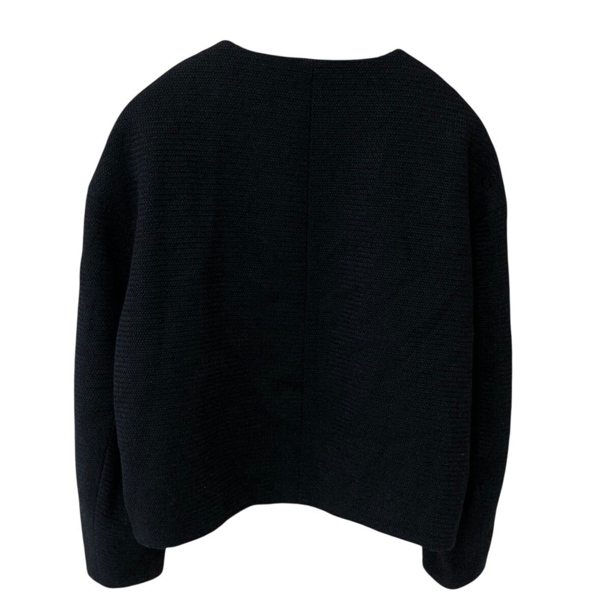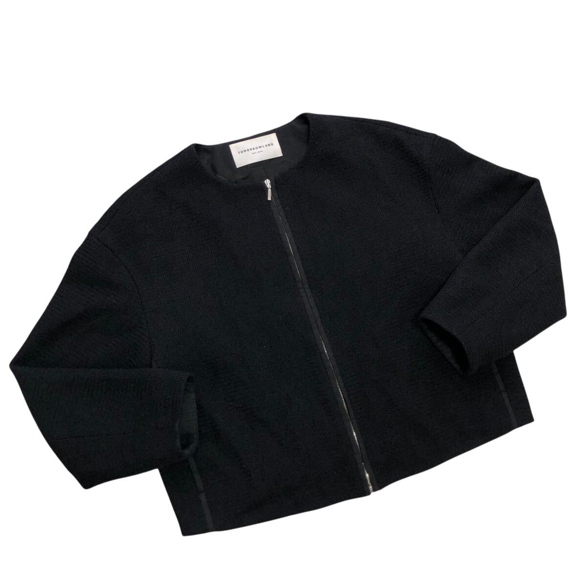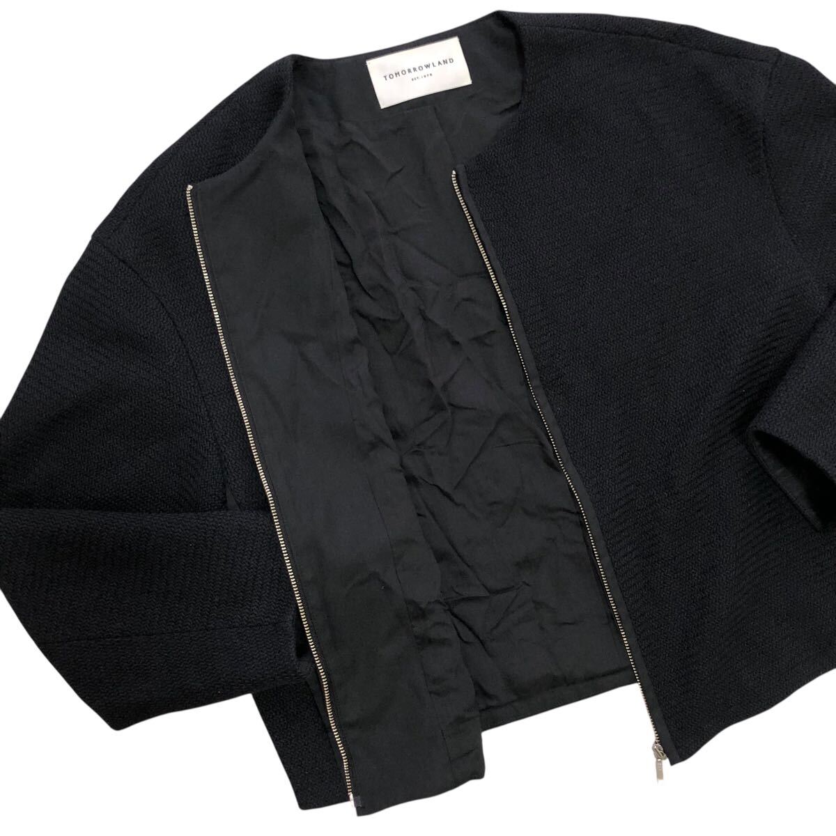 10NG006-55 TOMORROWLAND トゥモローランド 麻混 ノーカラー トップス アウター 長袖 フルジッパー 裏地 レディース 36 S相当 ブラック