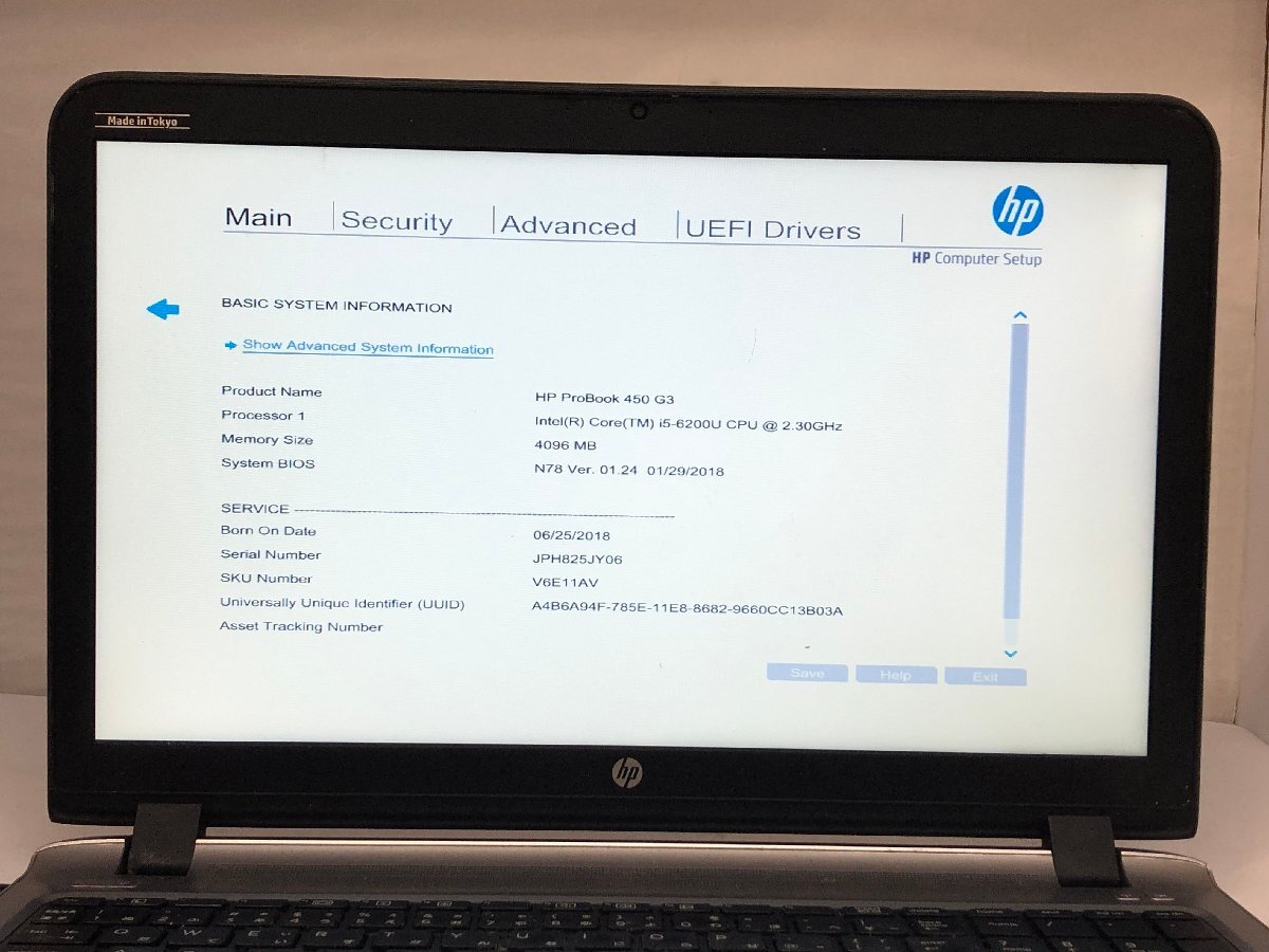 ジャンク/ HP HP ProBook 450 G3 Intel Core i5-6200U メモリ4.1GB ストレージ無し 【K23441】