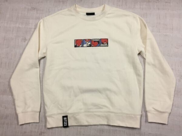 BT21 ライン LINE スタンプ キャラクター かわいい ファンシー スウェット トレーナー メンズ 小さいサイズ XS オフホワイト です。