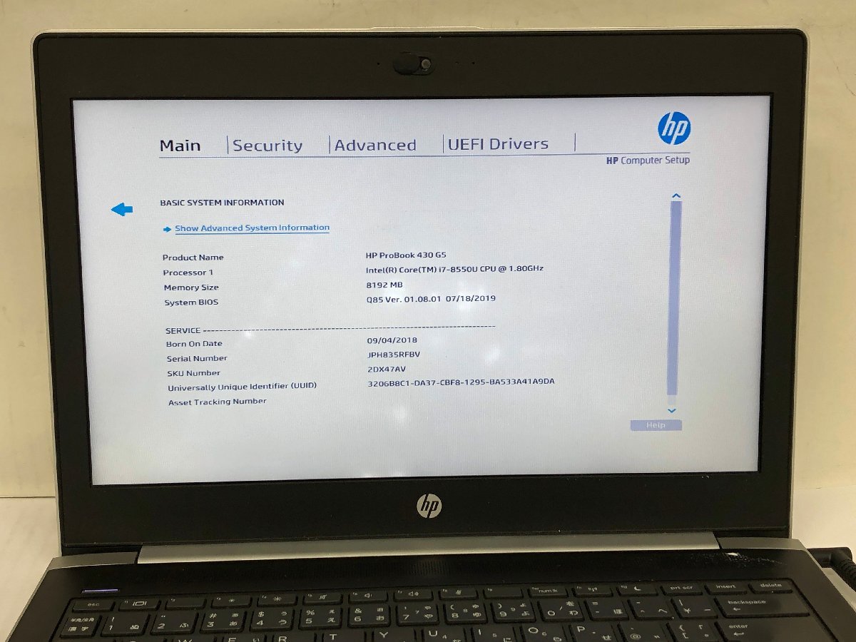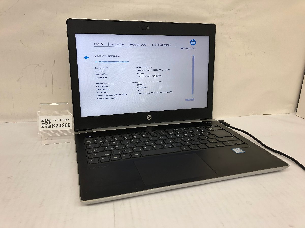 ジャンク/ HP HP ProBook 430 G5 Intel Core i7-8550U メモリ8.19GB NVME256.06GB 【K23368】