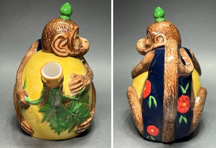 オークションをご覧いただきありがとうございます。 限定希少品 ミントン MINTON モンキー ティーポット 猿のティーポット アーカイブコレクション No.1560/1793個 サイズ 持ち手~注口まで約21㎝ 高さ(頭の上まで)約14㎝ 幅約9㎝ 重さ412g 長期保管品です。 ポットに特筆する傷等は見られませんが、紙の箱に経年の擦れが少々見られます。 現状でのお渡しになります。 写真をご参照ください。 |