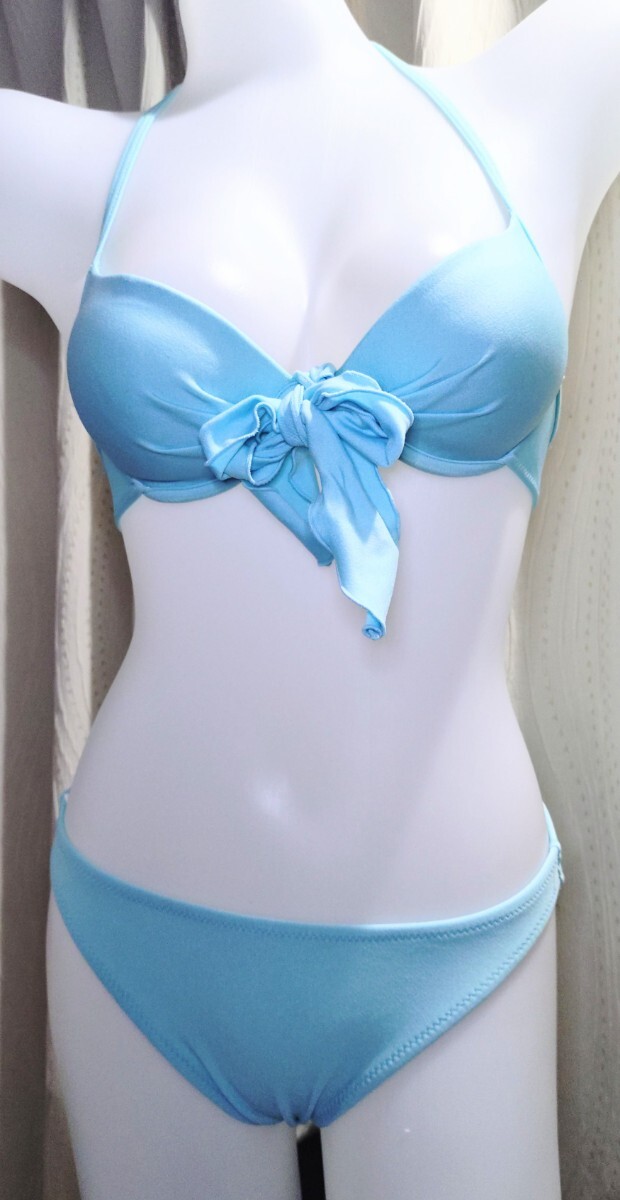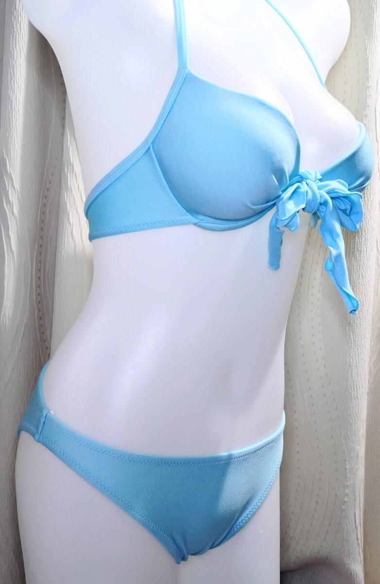 中古★Deisies レディース ビキニ Mサイズ 9M 水色 無地 リボン 水着 日本製 ホームクリーニング済み セパレート 匿名配送 同梱可