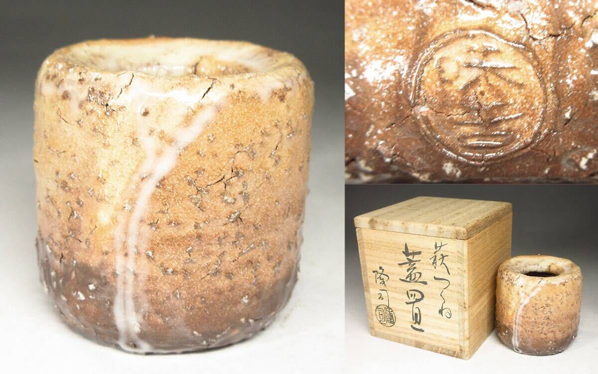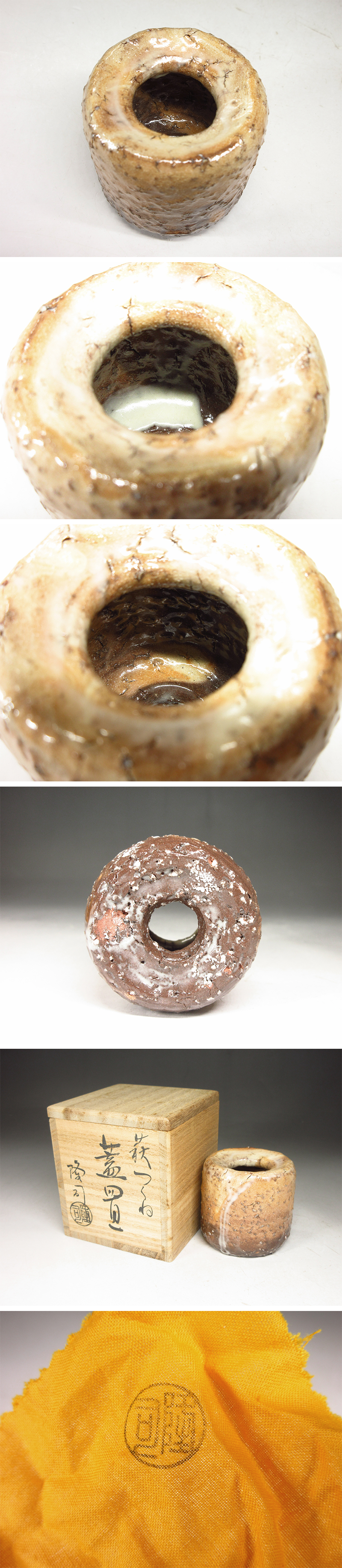 【漸】『味舌隆司』造 萩つくね蓋置 共箱 共布 萩焼 茶道具 本物保証【HY2768】
