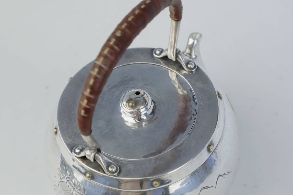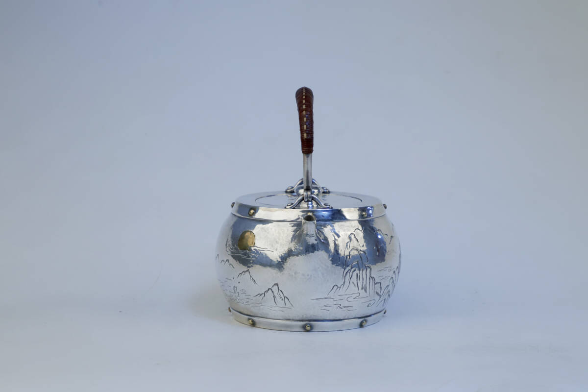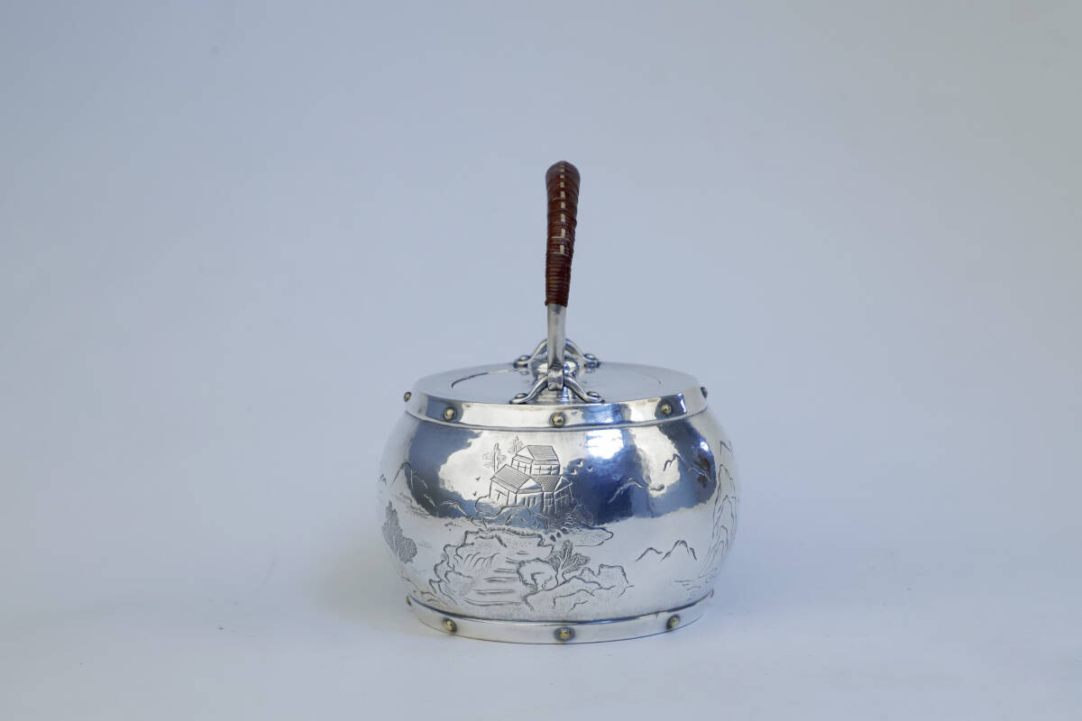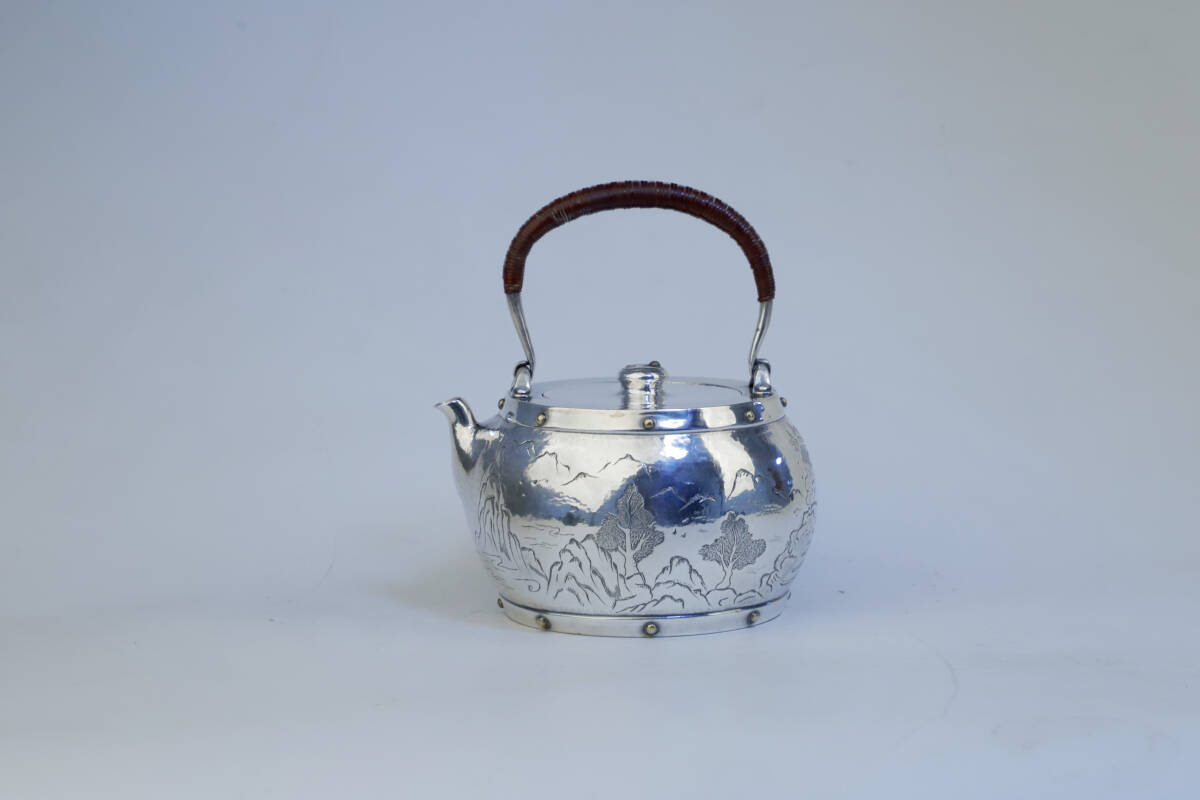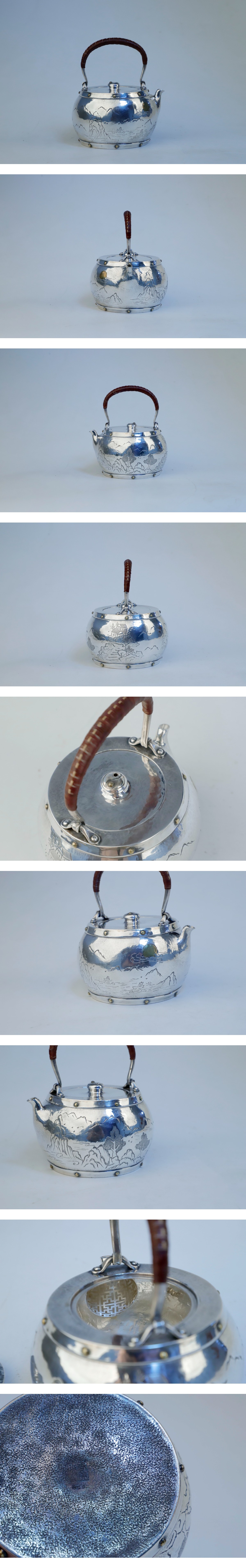 時代 純銀製 尚美堂造 萬千山水図 湯沸 工芸品 美術品 銀瓶 煎茶道具
