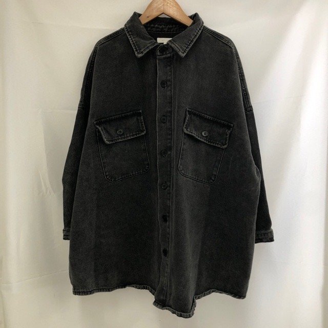 A1814 オールロウ 袖5部丈S アメリカ古着 デニム シャツ ブラック all:row レディース