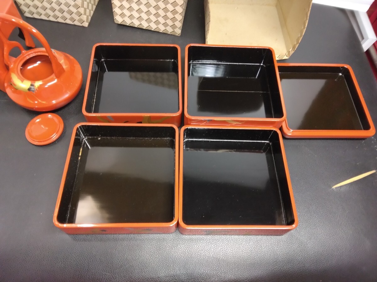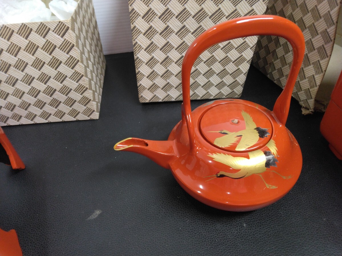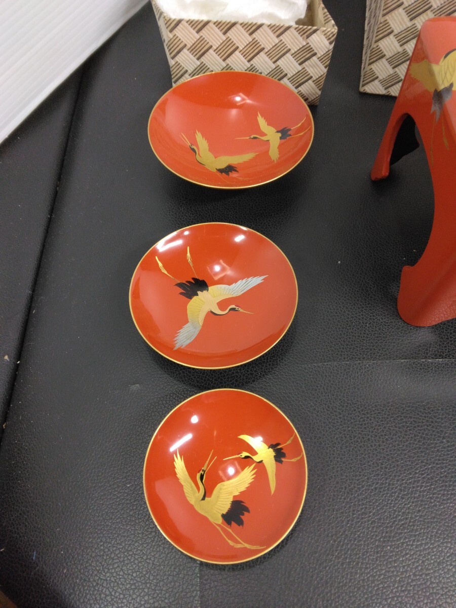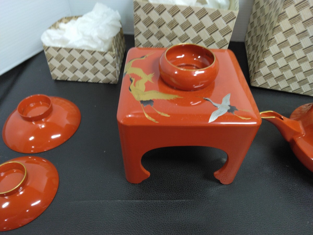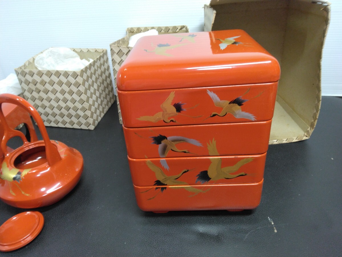 当時物 レトロ お屠蘇セット 漆器 うるし 和食器 お猪口 急須 重箱 鶴 ヴィンテージ 酒器 工芸品