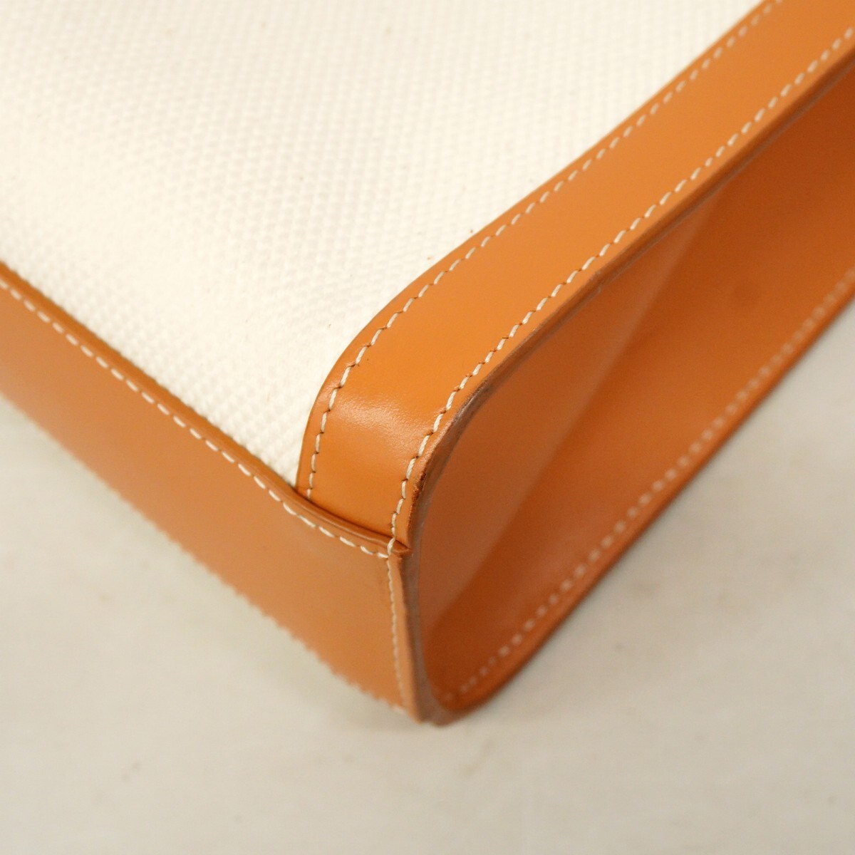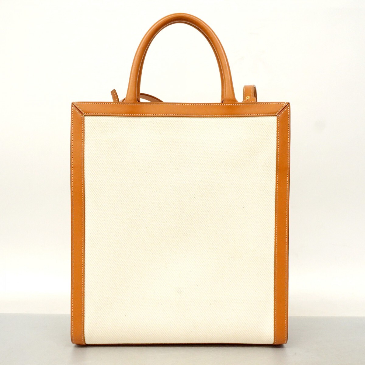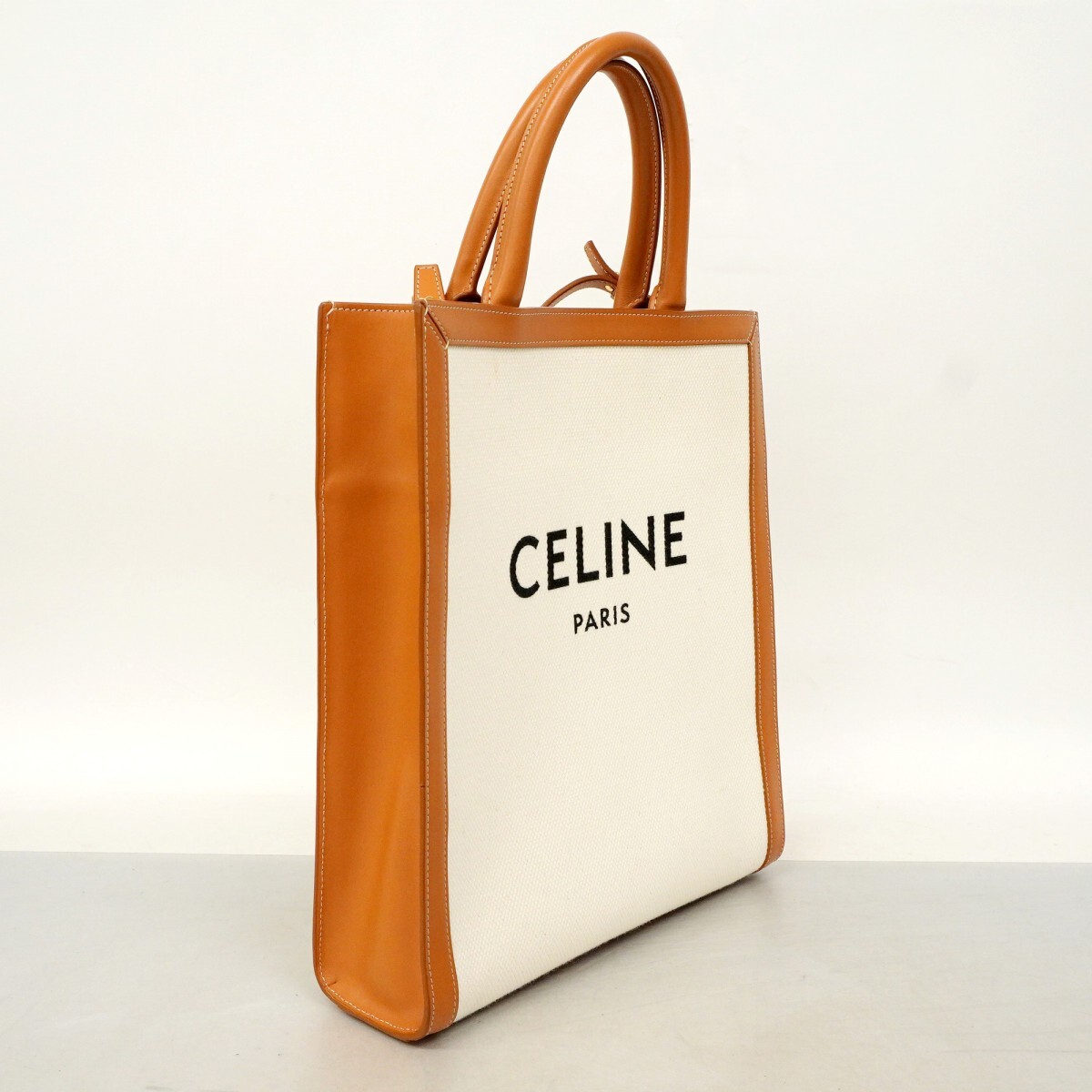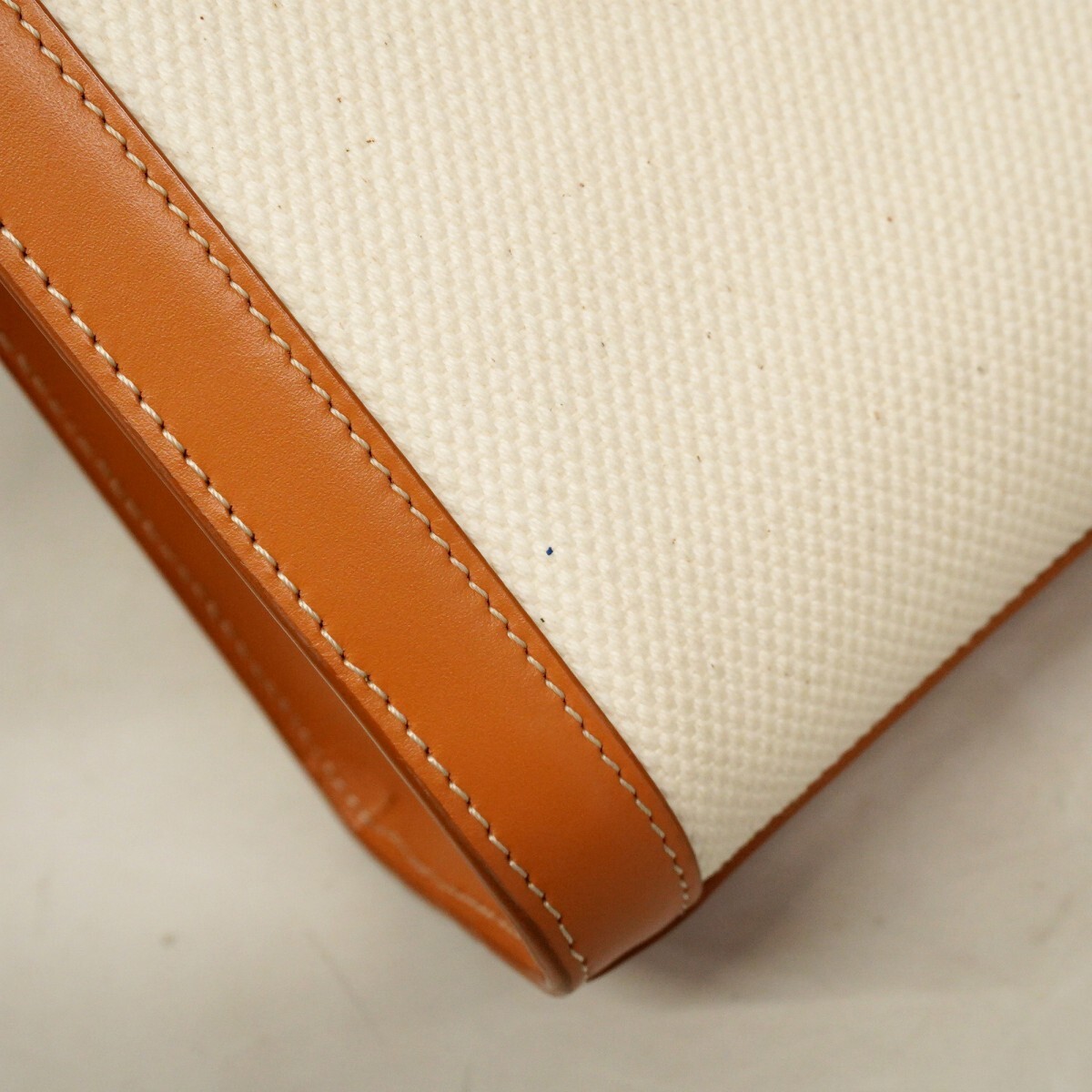 ★SALE【5mc3242-h】セリーヌ トートバッグ キャンバス レザー ホワイト ブラウン ゴールド金具【中古】レディース