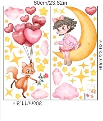 MJ-H462★壁紙 デコ ウォールステッカー 熱気球 赤いハートの風船ですきつね動物 リボンの女の子です 空の雲 おしゃれ モダン アート DIY 北欧 インテリア ポスター ステッカー シール式ステッカー 飾り ウォールデコ ウォールペーパー ウォール