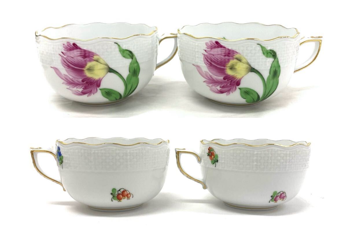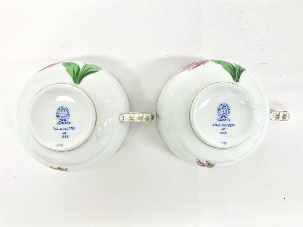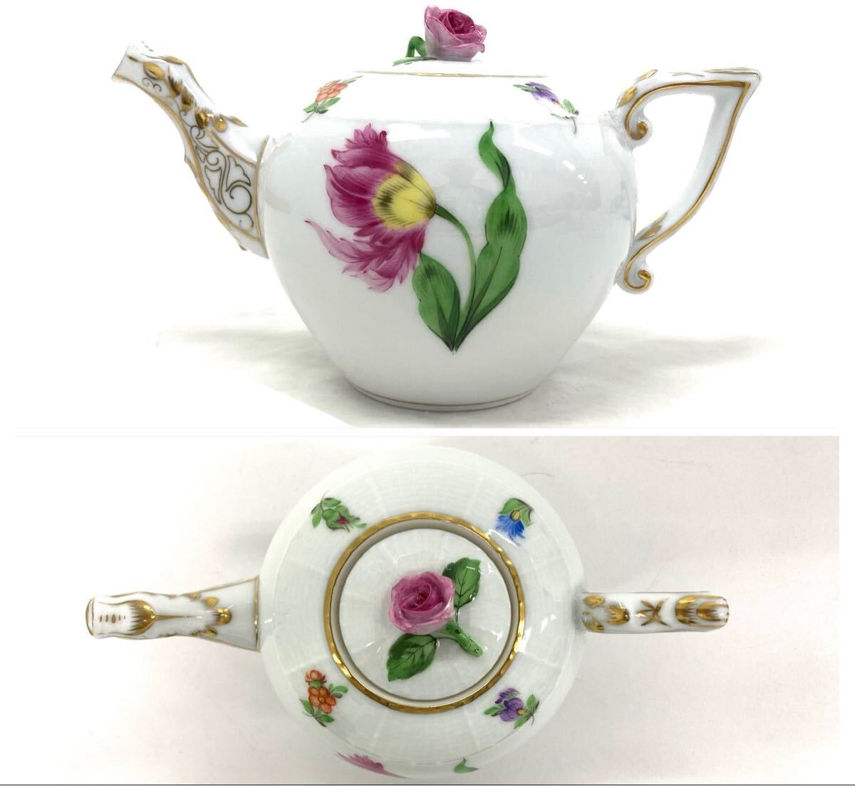T10/091 HEREND HVNGARY ヘレンド ハンガリー ティーポット カップ ソーサー 他 花柄 ティータイムセット 7点 G98 ホワイト