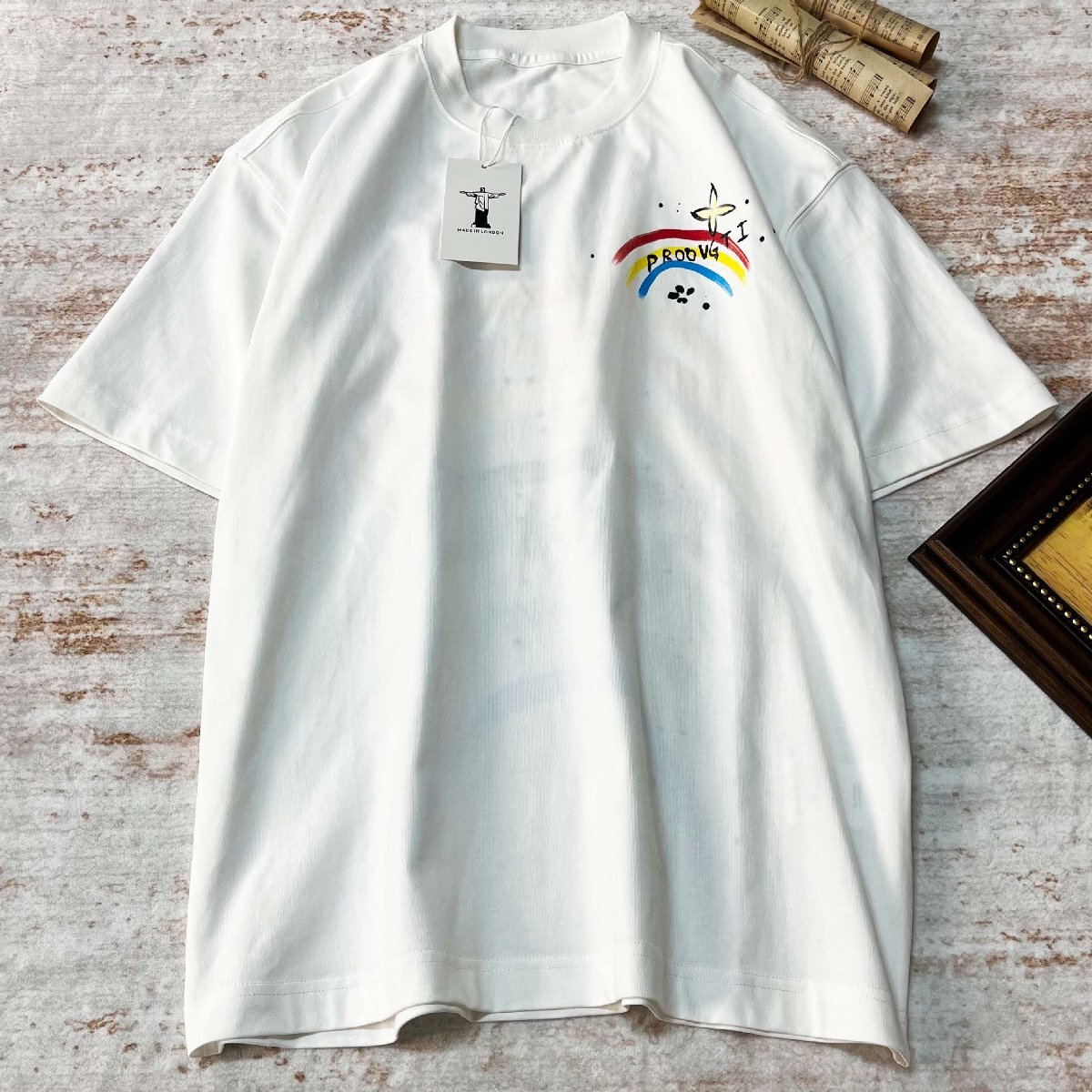 半袖Tシャツ ロンドン製造 コットン100% 通気 ソフト 快適 人気 丸首 レインボー柄 可愛い カジュアル スウェット トップス 日常着 SIZE:XL