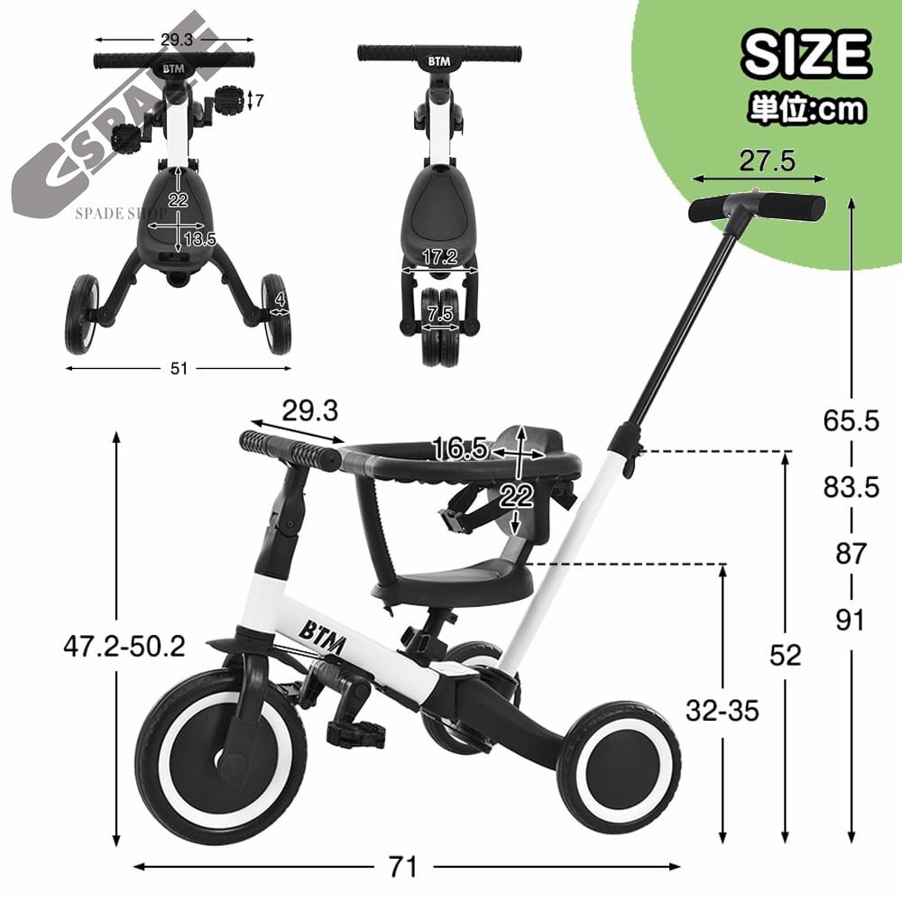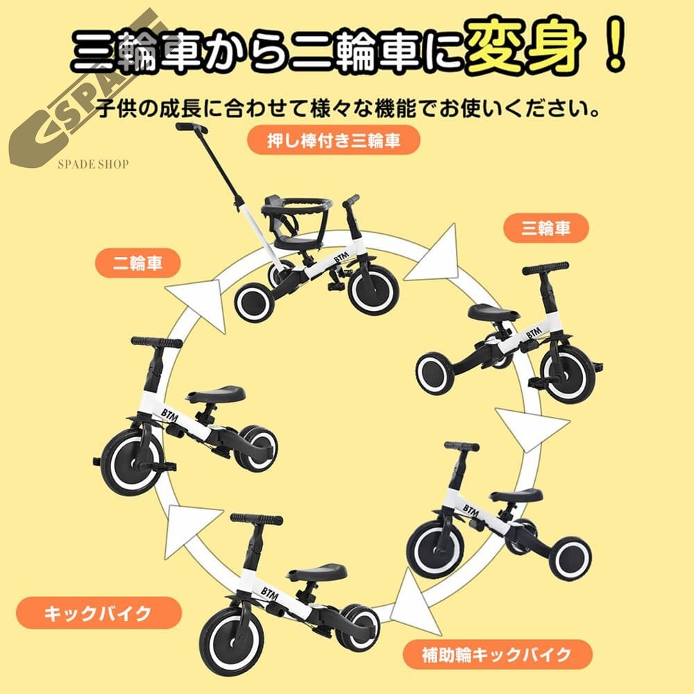 • 【一台5役 長く楽しめる】押し棒付き三輪車三輪車補助輪キックバイクキックバイク二輪車、子供の成長に合わせて様々な機能で使える。