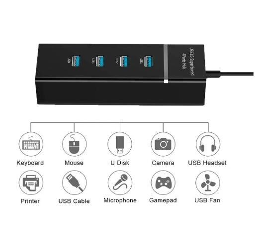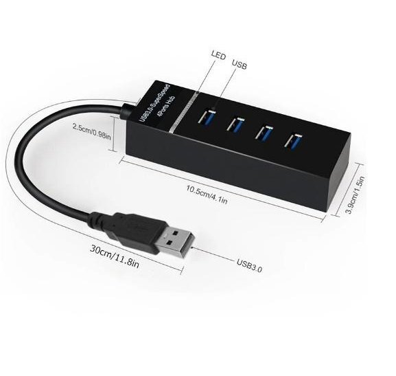 USBハブ 4ポート USB3.0×1+USB2.0×3 拡張 軽量 黒 ブラック