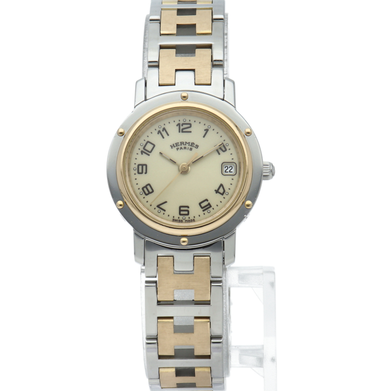 エルメス クリッパー レディース時計 CL4.220 GP/SS レディース時計 アイボリー 仕上げ済 美品 中古