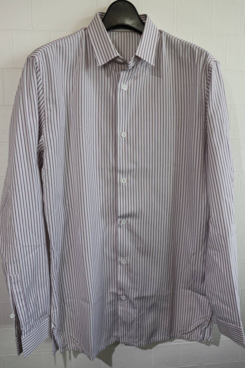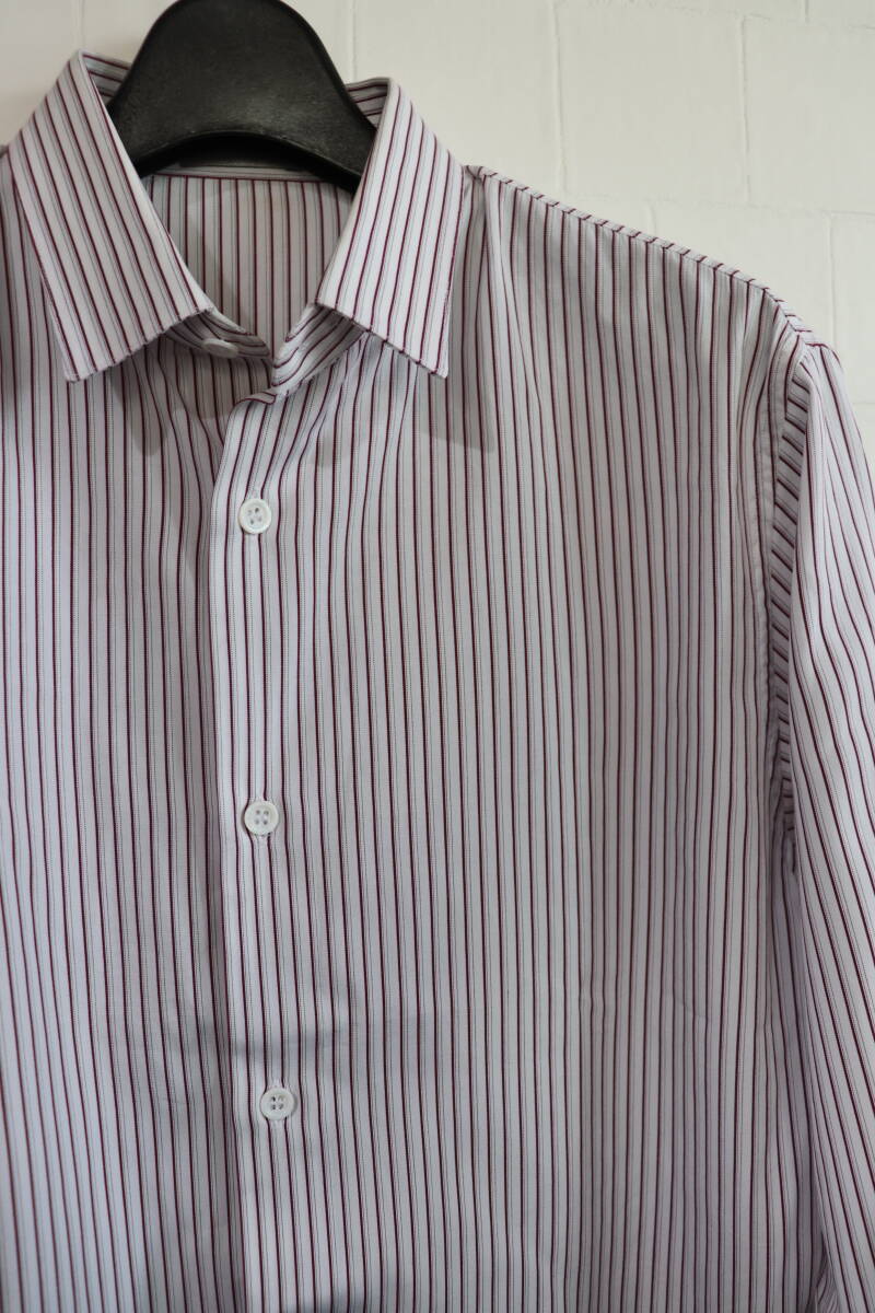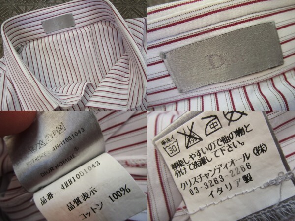 04AW 即決 Dior HOMME ディオールオム Hedi Slimane エディ期 victim期 ストライプ柄シャツ 長袖ドレスシャツ メンズ37 ホワイト×ワイン