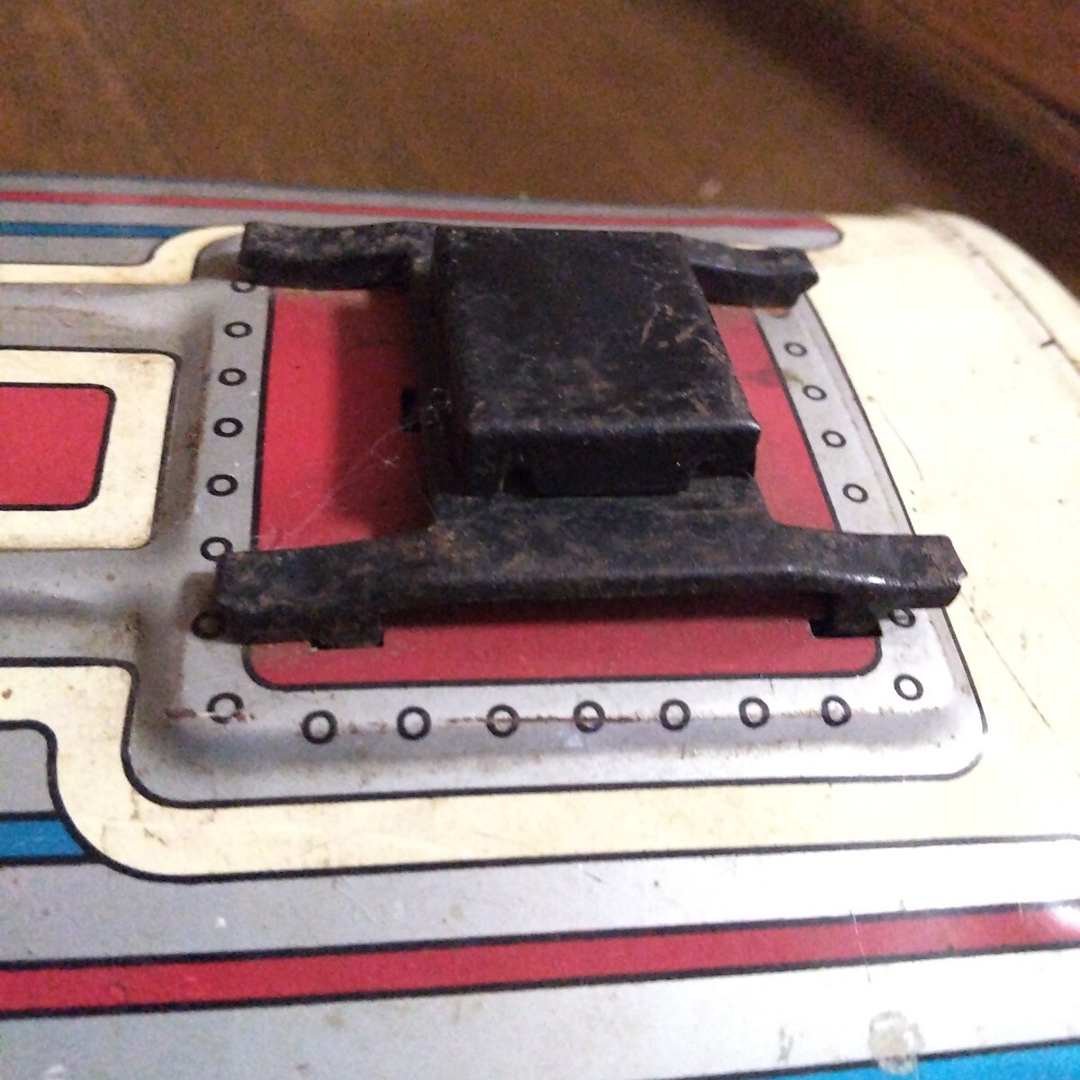 ヨネザワ製の57cmサイズのブリキ食堂車となります。前頭部のレバーを引くとベルが鳴るギミックがございます。フリクションの方も問題ありません。当時遊ばれた物なので、サビや凹みがございます。画像にてご確認の上、入札願います。