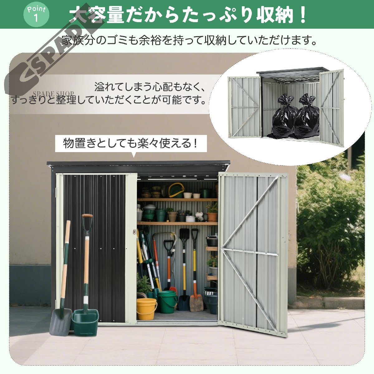 • ◎01【屋外に溢れてしまうゴミも、これ1台ですっきり整理。】頑丈に作られており、雨に強く、屋外に置き続けても安心です。広く開く扉と屋根に鍵付きなので、出し入れも管理もラクラク。シンプルながらスタイリッシュに空間に溶け込みます。