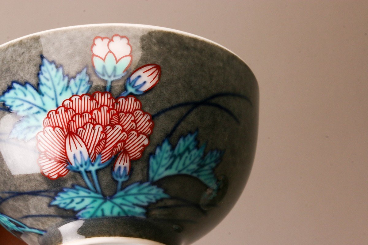 【SAG】人間国宝 十三代 今泉今右衛門 本人作 色絵薄墨芙蓉文煎茶碗 一対 共箱 共布   本物保証