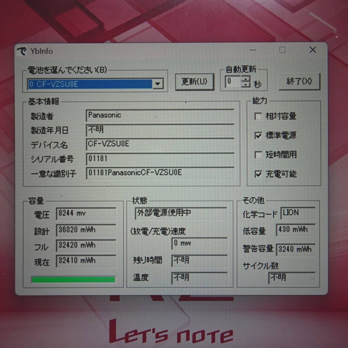 【動作品・残量90%】Panasonic CF-VZSU0EJS 純正バッテリー 7.6V 36Wh RZシリーズ CF-RZ4/RZ5/RZ6/交換用 予備用 延命に最適#BT-2265