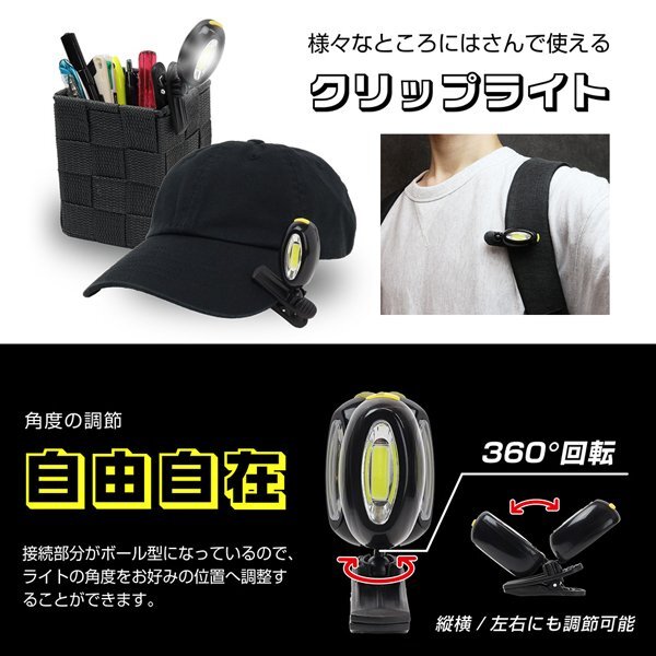| パッと明るく照らす!360度回転! クリップではさんでカンタン装着! |