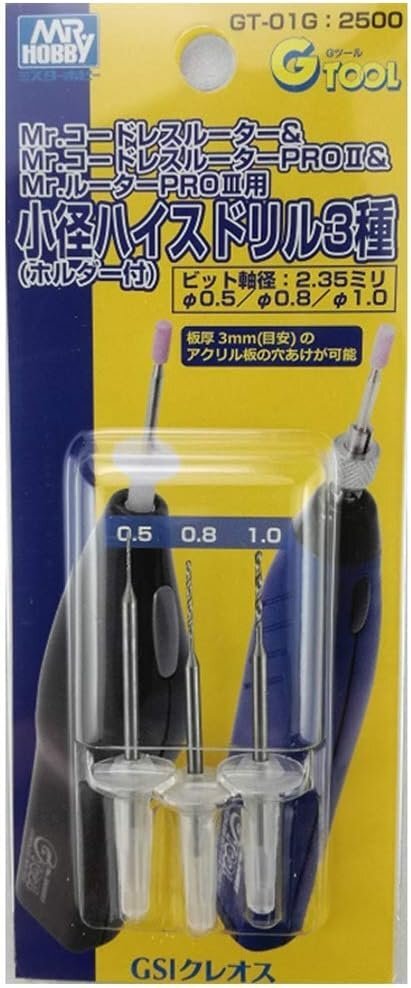 クレオス GT-01G Mr.ルーター用 小径ハイスドリル3種セット 0.5/0.8/1.0 定価¥2500(税別)