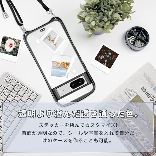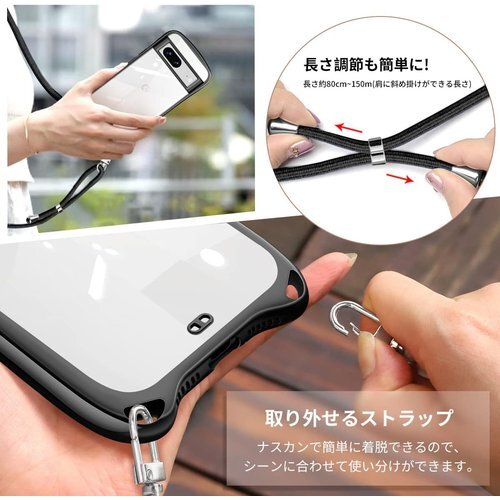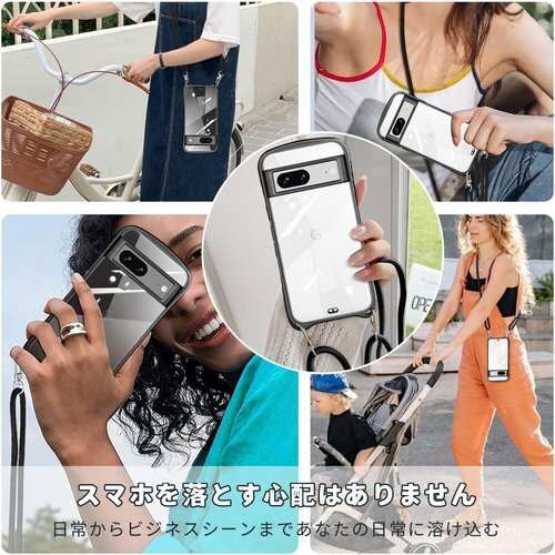 Google Pixel 7a ケース クリア ショル 保護 薄型 韓国 可愛い 縄掛け スマホケース ブラック 240
