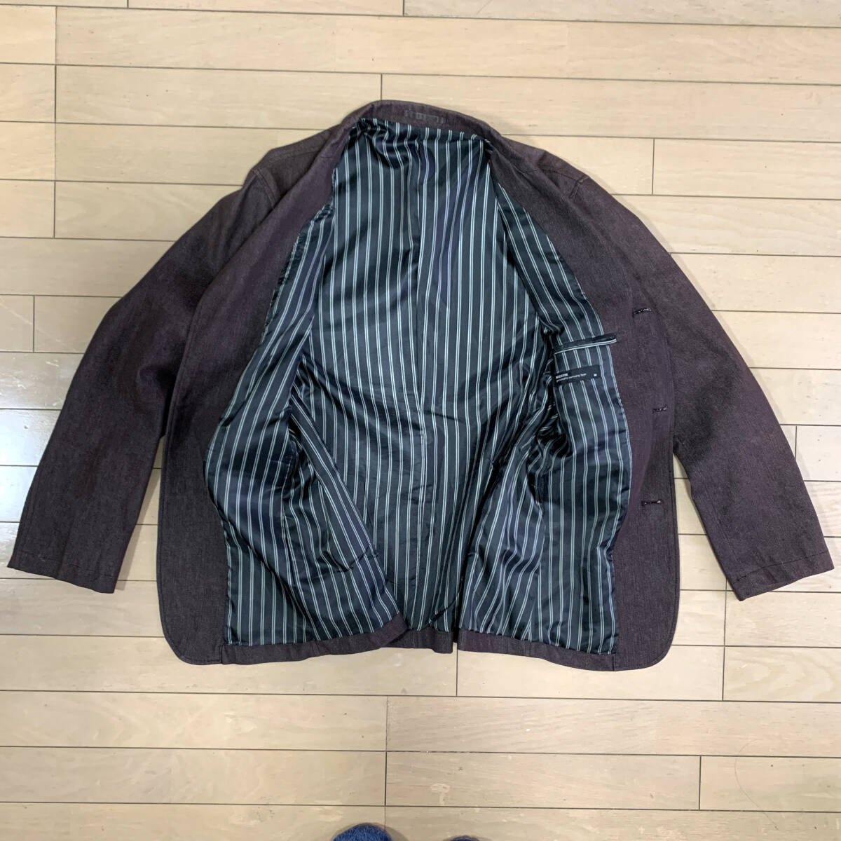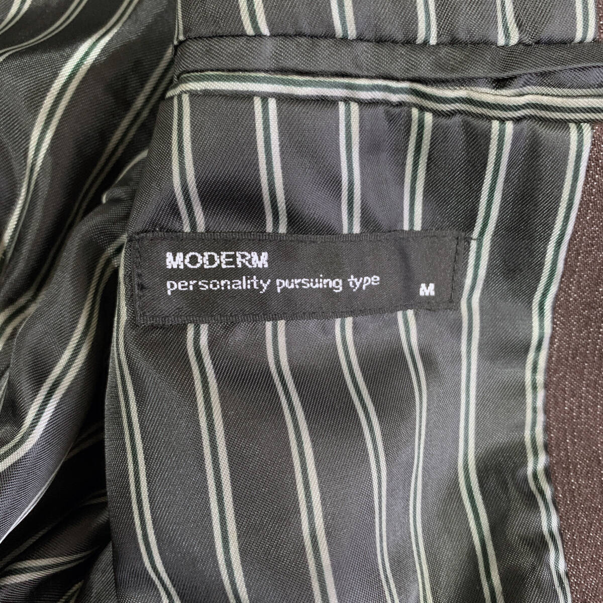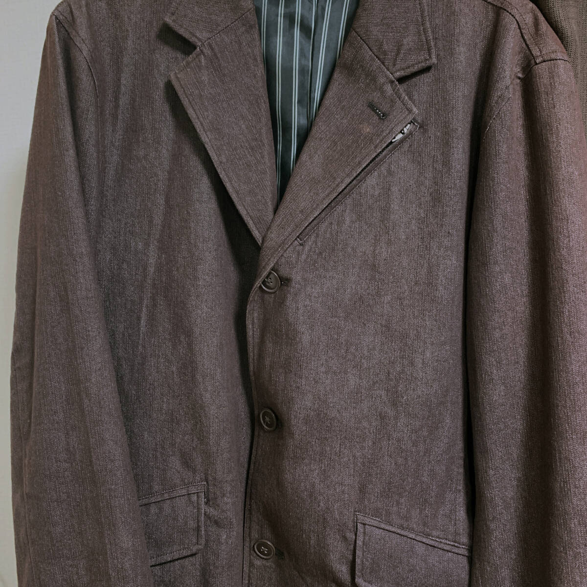 柔らかい着心地で状態良好です。サイズはMサイズ表記ですが、実際はLサイズに近いです。 - 色: ブラウン - デザイン: テーラードジャケット - ブランド: MODERM - サイズ: M(実質L) - 素材: 画像6枚目参照 - 実測サイズ: 身幅51、身丈71、袖丈61、肩幅45(cm・直線計測)