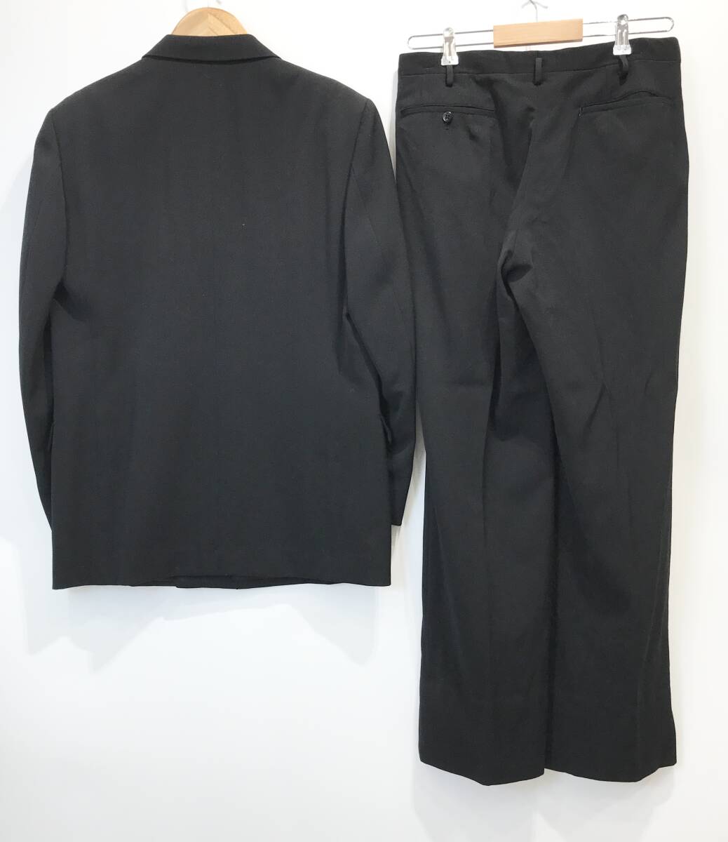 【古着】 80s スーツ 上下セットアップ テーラードジャケット スラックス YZIPジッパー ウール ブラック 280 ヴィンテージ オールド SIZE:A5■1027K ジャケット:3ボタン、肩パット付き、予備生地・ボタン付き ボトムス:ジップフライ仕様 |
