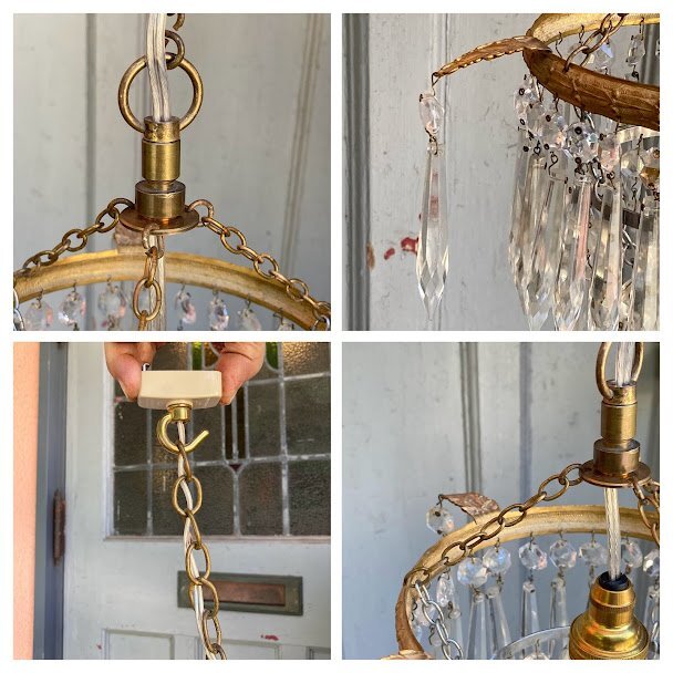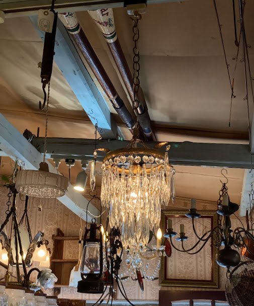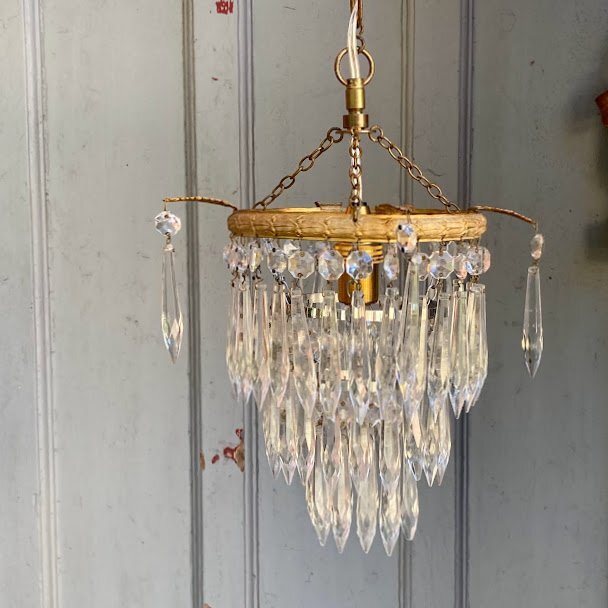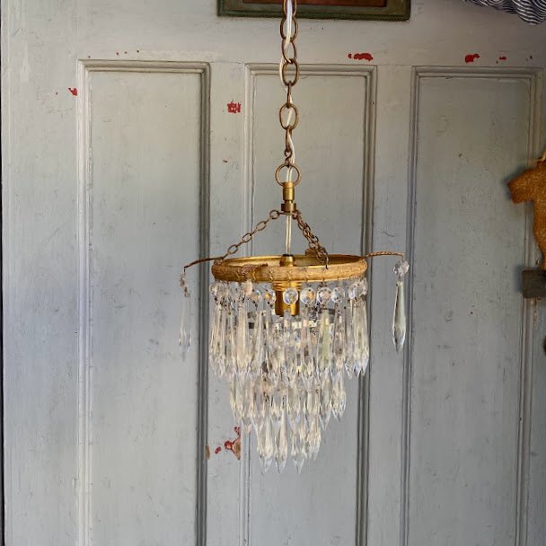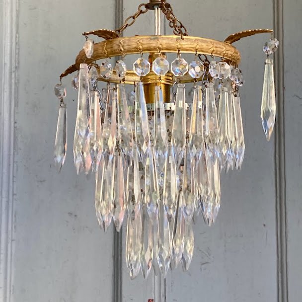 フランスアンティーク きらめく小さなシャンデリア【44-76B】ガラス クリスタル プチシャンデリア アンティークランプ コード交換済み