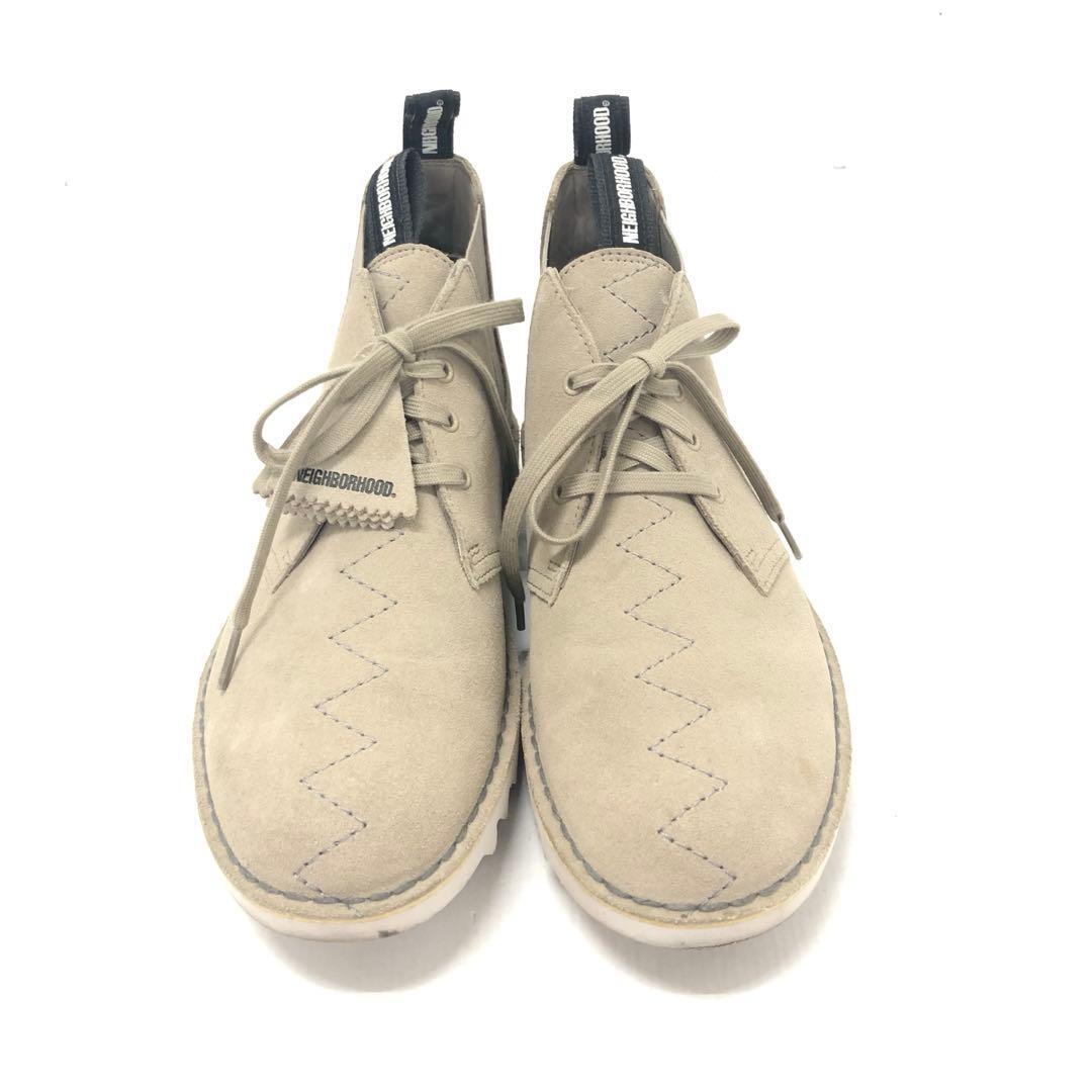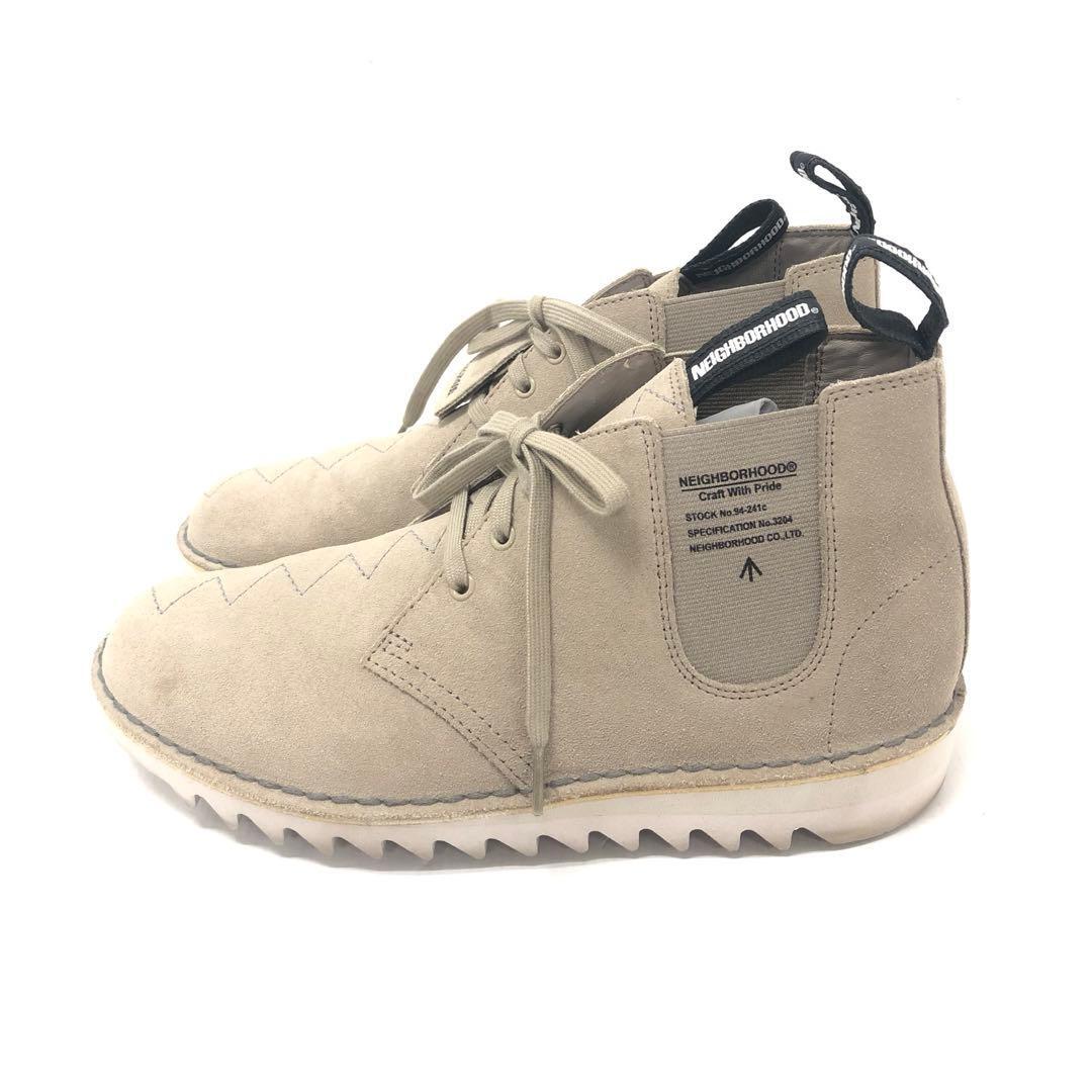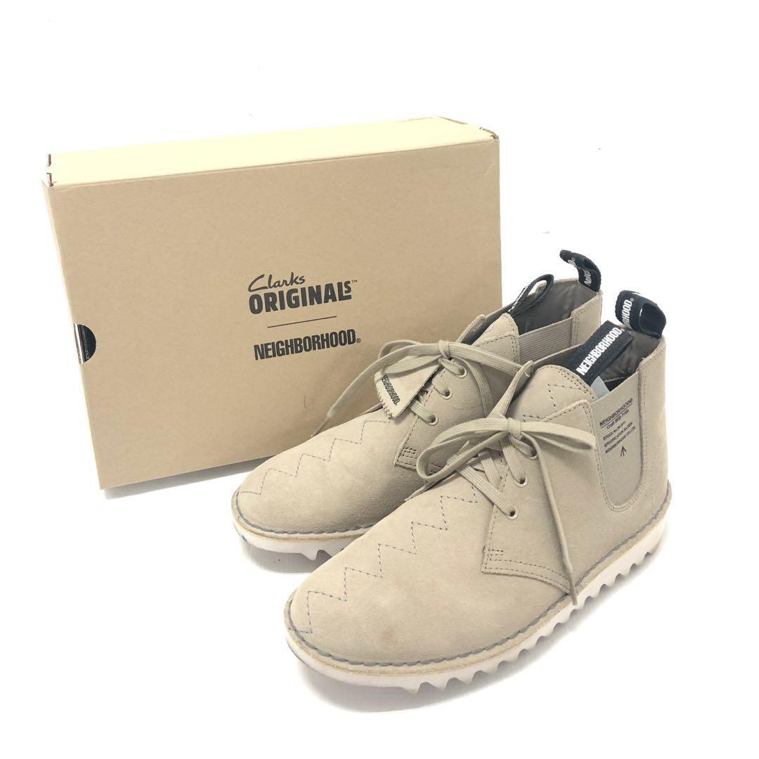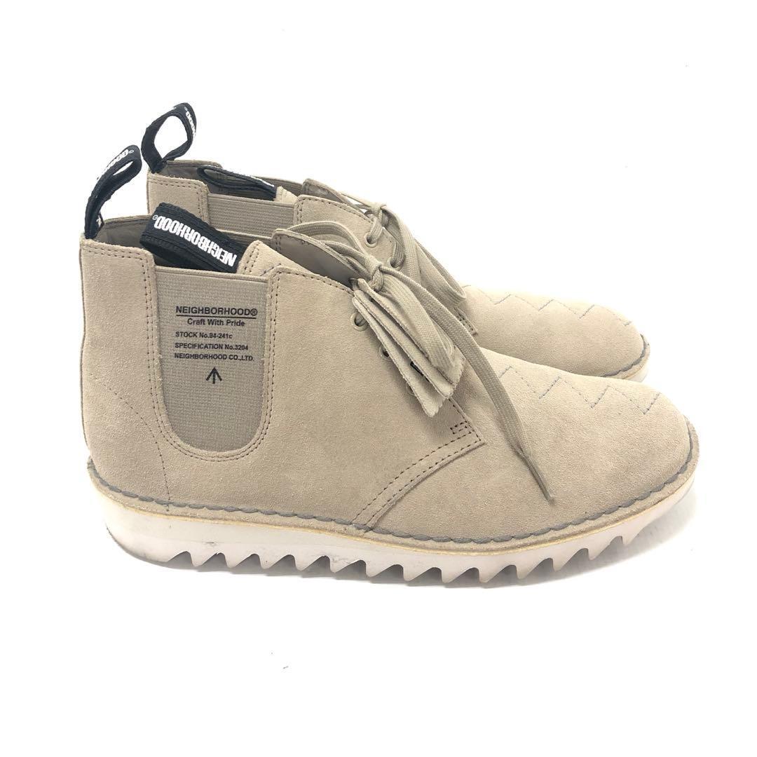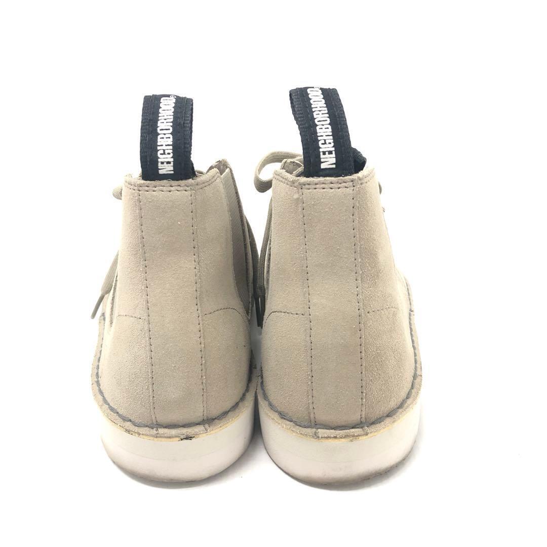 【 商品名 】 NEIGHBORHOOD×CLARKS DESERT BOOT サイズ:UK8 【 コンディション 】 ●ブランド● NEIGHBORHOOD × Clarks (ネイバーフッド クラークス) ●商品名● DESERT BOOT (デザートブーツ) ●型番● 241CLCLN-FW01 ●付属品● 箱 ●サイズ● サイズ:UK8(26cm) ●コンディション● 箱付きになります。 スレ・汚れ・インソールロゴに剥がれ ソールに減り・タグにヤケ?(画像9枚目)などの使用感がございます。 ※お品物の状態などは画像にてご確認くださいませ。 出品のお品物は一度は人の手を渡ったお品物になります。 画像に写っている物が全てになります。 その他、記載外の不具合・見落としがあった場合でも現状渡しとなります。 いかなる場合でも返金・返品はお受け致しません。 万が一、落札後に破損等がありましても返金・返品の対応は一切致しかねますので、 商品に関しまして良くご理解頂いた上で、 ノークレーム・ノーリターンでご入札下さいますようお願い致します。 【 発送について 】 ヤマト運輸の運賃元払いのみの取扱いとなります。 ※その他の発送方法には対応できません。落札後に指定されても対応致しかねます。 手渡し、引取などにも対応致しかねます。ご承知の上でご参加下さい。