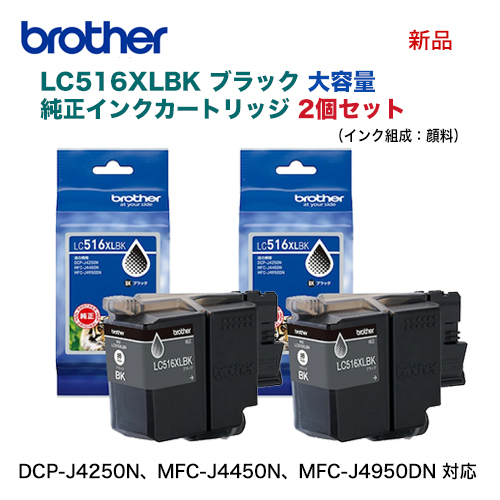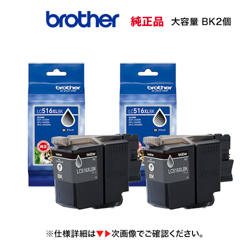 【大容量タイプ ブラック2本セット】 brother/ブラザー工業 LC516XLBK ブラック インクカートリッジ 純正品 新品 (DCP-J4250N, MFC-J4450N, MFC-J4950DN 対応)