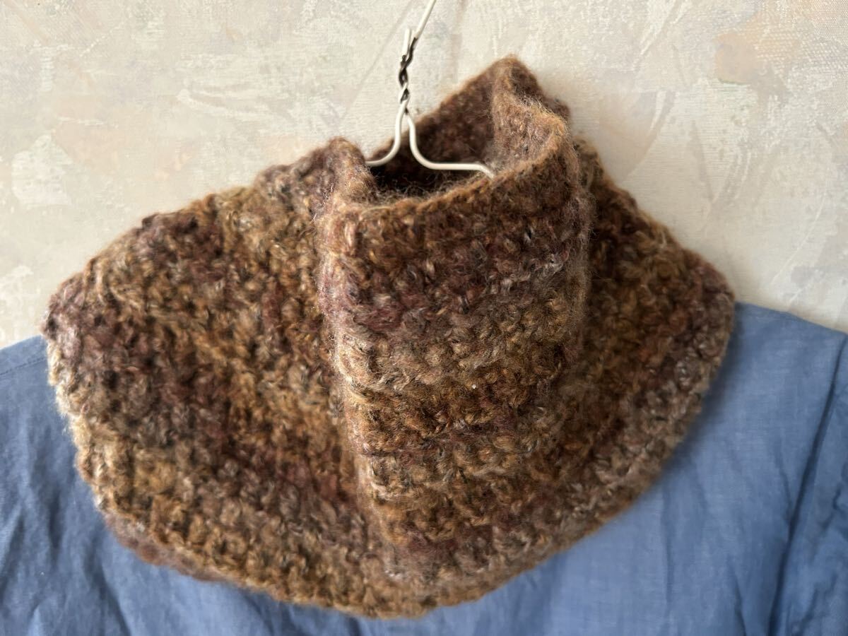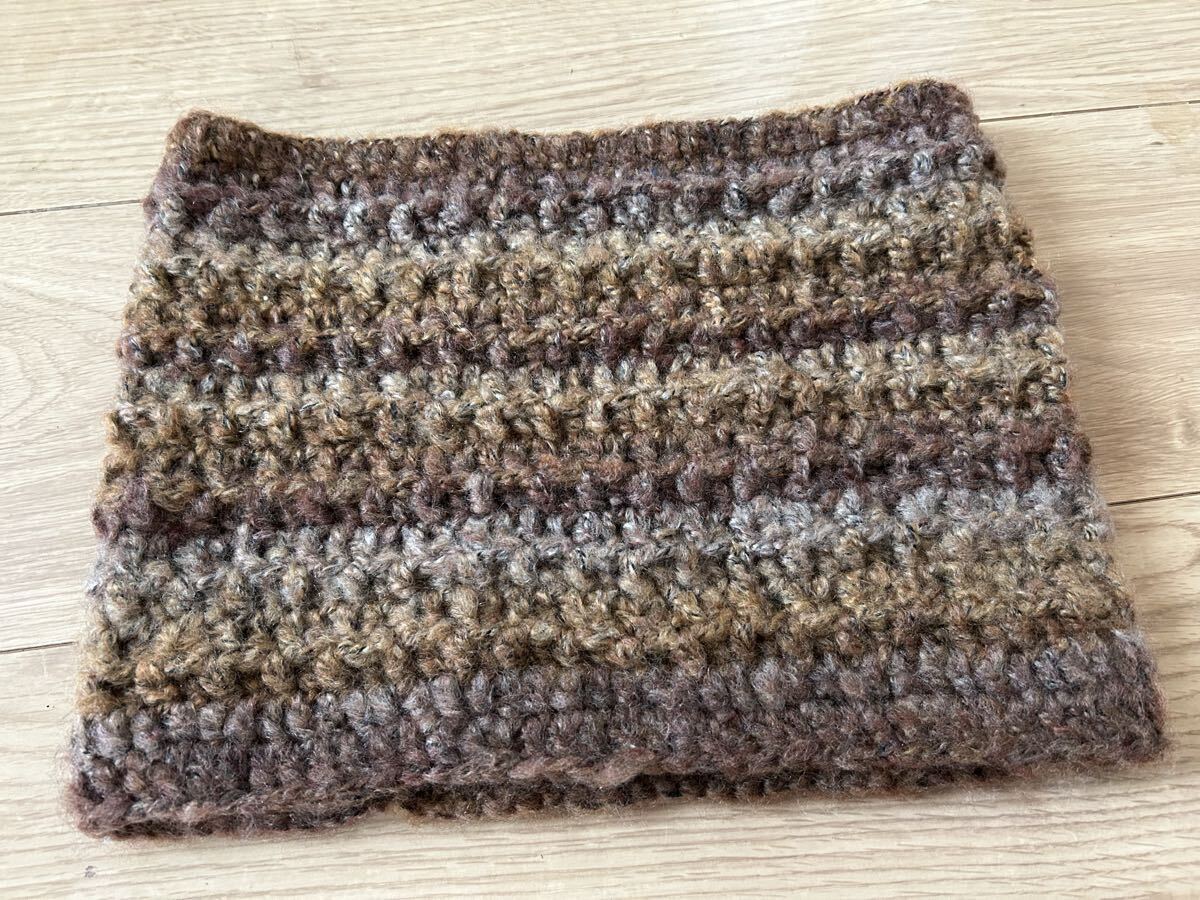 アクリルとポリエステルの糸でふわふわネックウォーマーを編みました