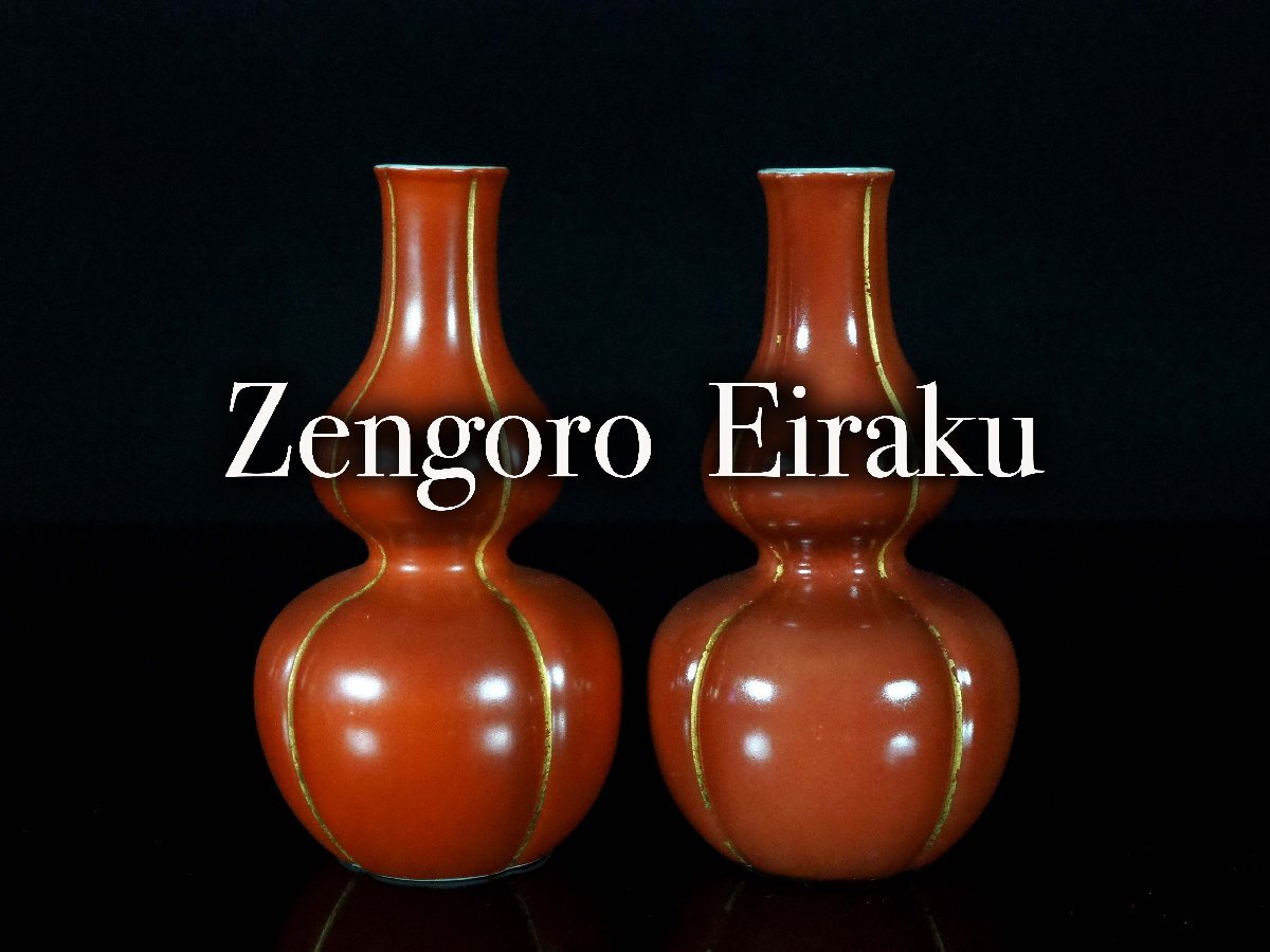【GK】十六代 永楽善五郎(即全) 赤瓷瓢酒器 2点セット 共箱 無傷 本物保証!