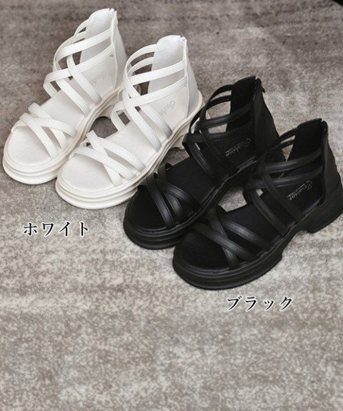 クロスストラップがデザインでポイントになった厚底サンダル