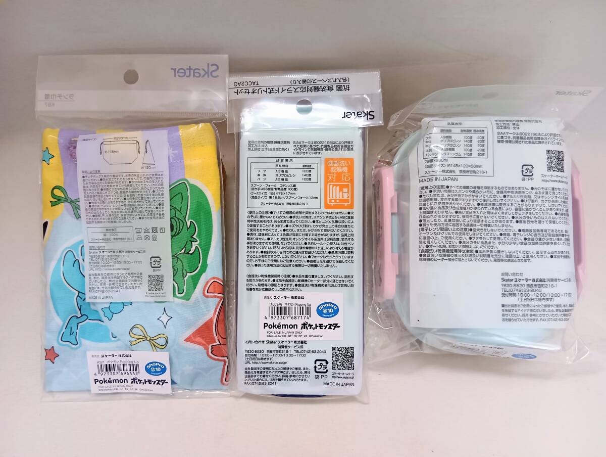 | スケーター(Skater)の新品未開封の子供用キャラクターランチボックスセットです。 お弁当箱・トリオセット・お弁当入れの3点セット。 ポケットモンスターのピカチュウ・ニャオハ・ホゲータ・クワッス・パモ・パピモッチ・カヌチャンたちのデザインです。カラーは水色・ブルー系。 同シリーズでのセット品ですので、こどもの入園準備や入園入学セットとしておすすめです。 幼稚園・保育園の運動会や遠足の準備にも。 その他のキャラクター360mlお弁当箱3点セットも出品中です♪ ポケモンのお弁当箱セット♪ ゲームのお弁当箱セット♪ 女の子におすすめのお弁当箱セット♪ <セット内容>〔シリーズ名:ポケモン Popping up〕 ①【抗菌ふわっとフタタイトランチボックス 1段 360ml/QAF2BAAG】 ドーム型フタなのでおかずをふわっと盛り付け。中子付き。 お弁当箱半分に入るご飯の量はお茶碗約200mlの約0.9杯分。 フタを外して電子レンジ可。食洗機対応。名前シール付。 ●容量:360ml(130mlの中子1個付き) ●商品サイズ(約):横148×奥行123×高さ56mm ●日本製 ●JAN:4973307687198 ②【抗菌トリオセット/TACC2AG】 スライド式のお箸・フォーク・スプーンとケースのセット。 食洗機対応。名前シール付。 ●商品サイズ(約):ケース198×76×17mm、箸16.5cm、スプーン・フォーク13cm ●重さ:150g ●日本製 ●JAN:4973307687174 ③【ランチ巾着/KB7】 左右にヒモを引く巾着袋のお弁当入れ。洗濯可。 ●商品サイズ(約):290×165×120mm ●品質表示:綿100% ●日本製 ●JAN:4973307696442 ==== 参考価格:定価4,455円(税込合計、送料別) その他注意事項: ・バラ売りには対応していません。即購入OKです。 ・送料込みの出品ですのでお値下げ交渉はご遠慮ください m(_ _)m ・すり替え防止のため不具合以外の理由での返品は受け付けておりません。 ・上記ご理解いただける方のみ購入をお願いします。 Pokemon Pikachu Nyaoha Japanese Lunch Bento Box Set with Bag for Toddlers Kids Girls キャラクターお弁当箱セット出品中♪ |