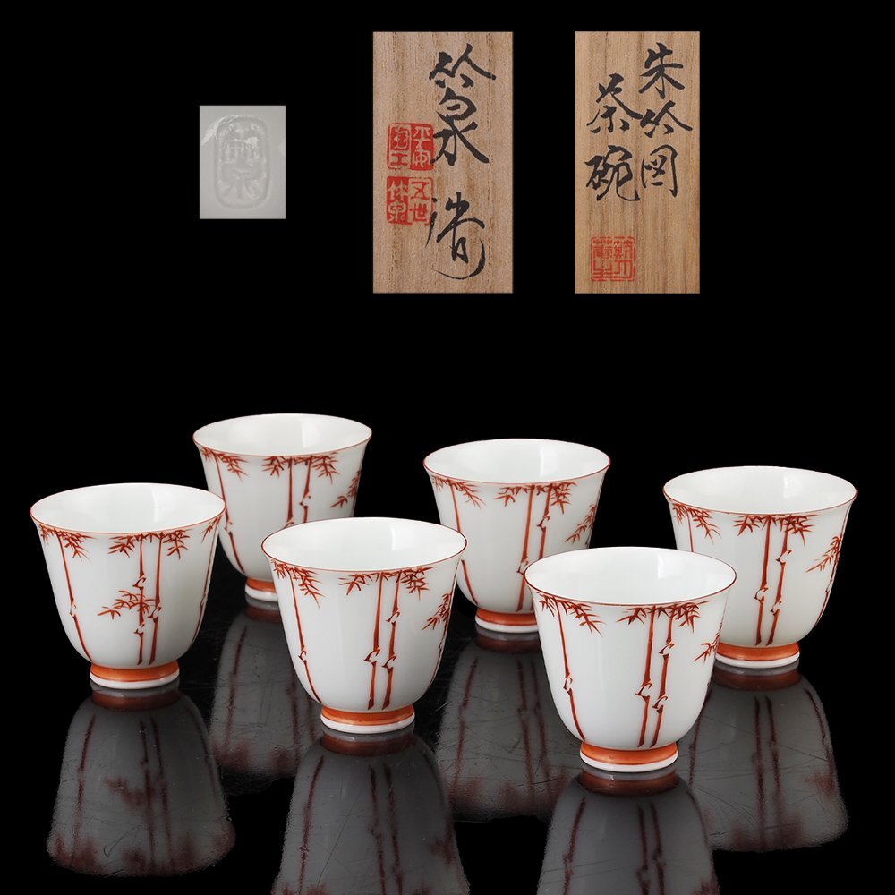傷なしです。 1客口縁に窯スジがあります。 くっつき、釉ぬけ、窯スジ、窯へこみは ご承知の上入札お願いします。 |