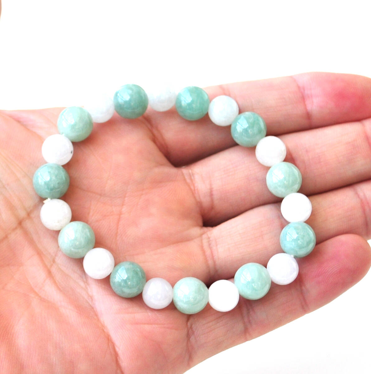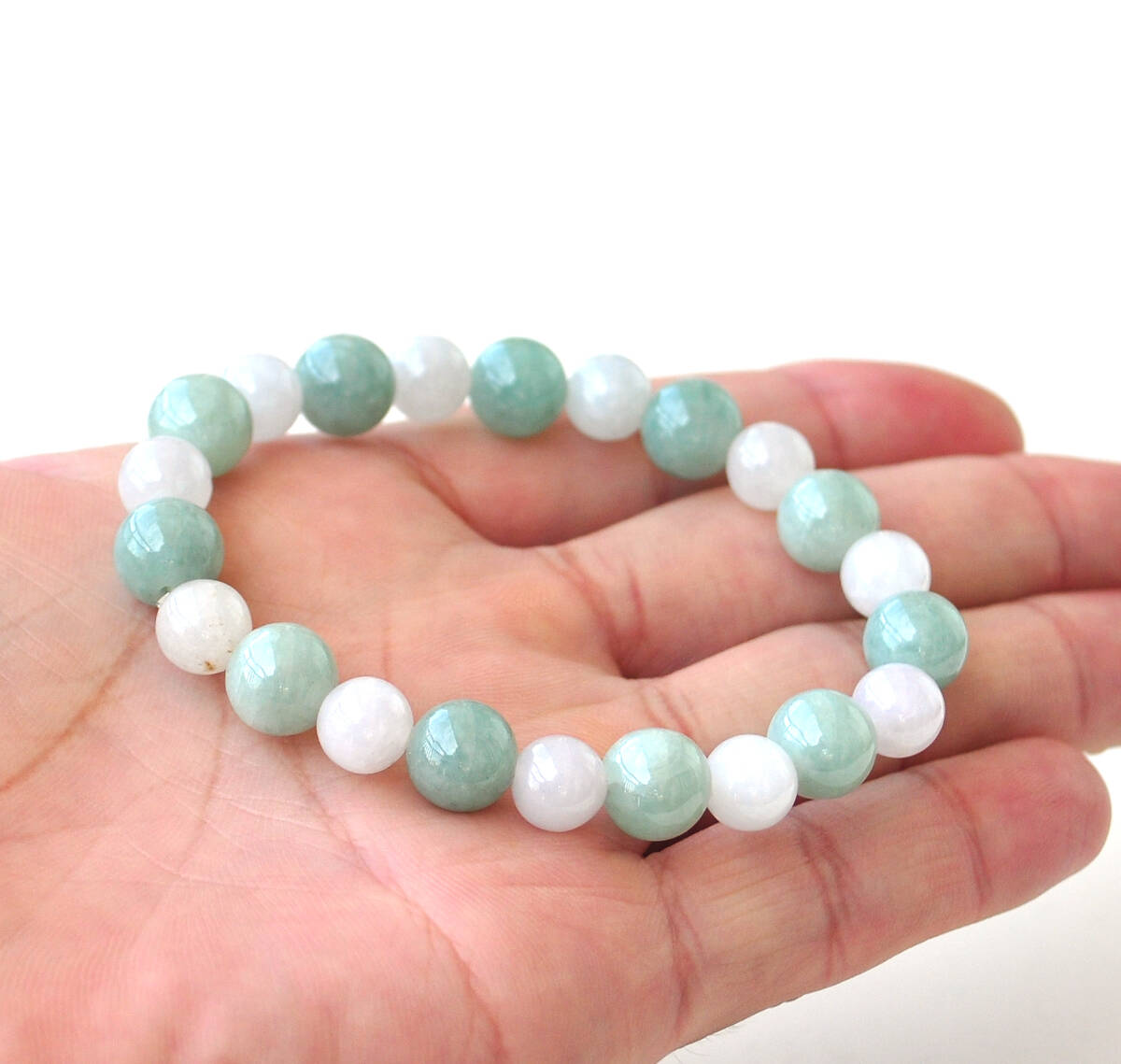 サイズ: ろうかん翡翠:約9㎜×11球 アイスジェイド約8㎜×11球