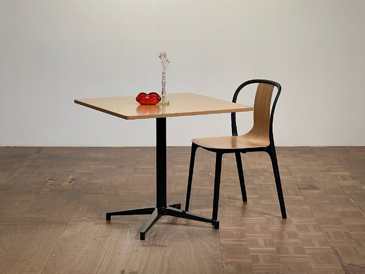 リリースと同時に世界中のカフェシーンを席巻した、現代シーンを代表するカフェテリアチェア等を引き立てる端正なデザインの名作ラウンドテーブル。Vitra. より。静かな杢目トーンの美しいオークトップ仕様 / 天板特注サイズ品のご提案。
