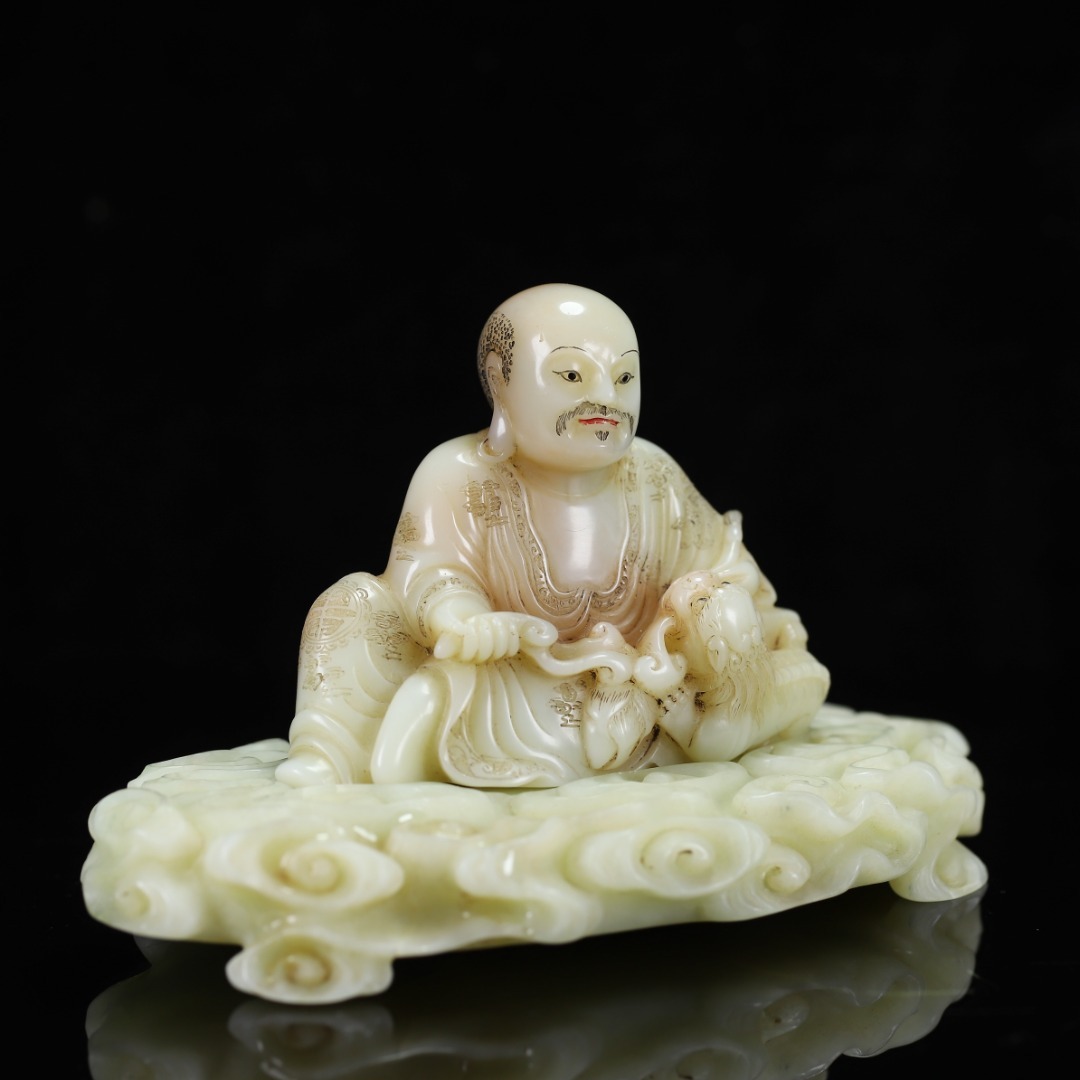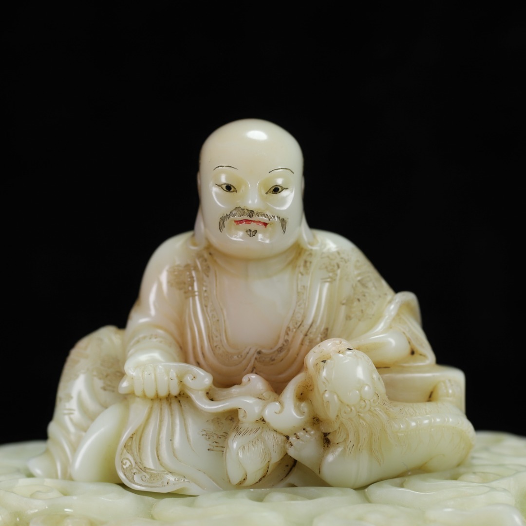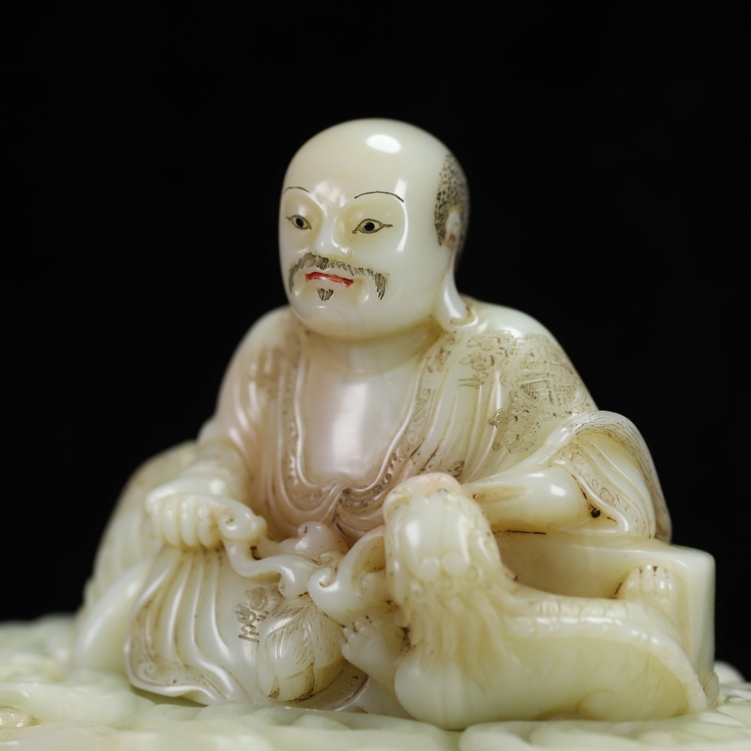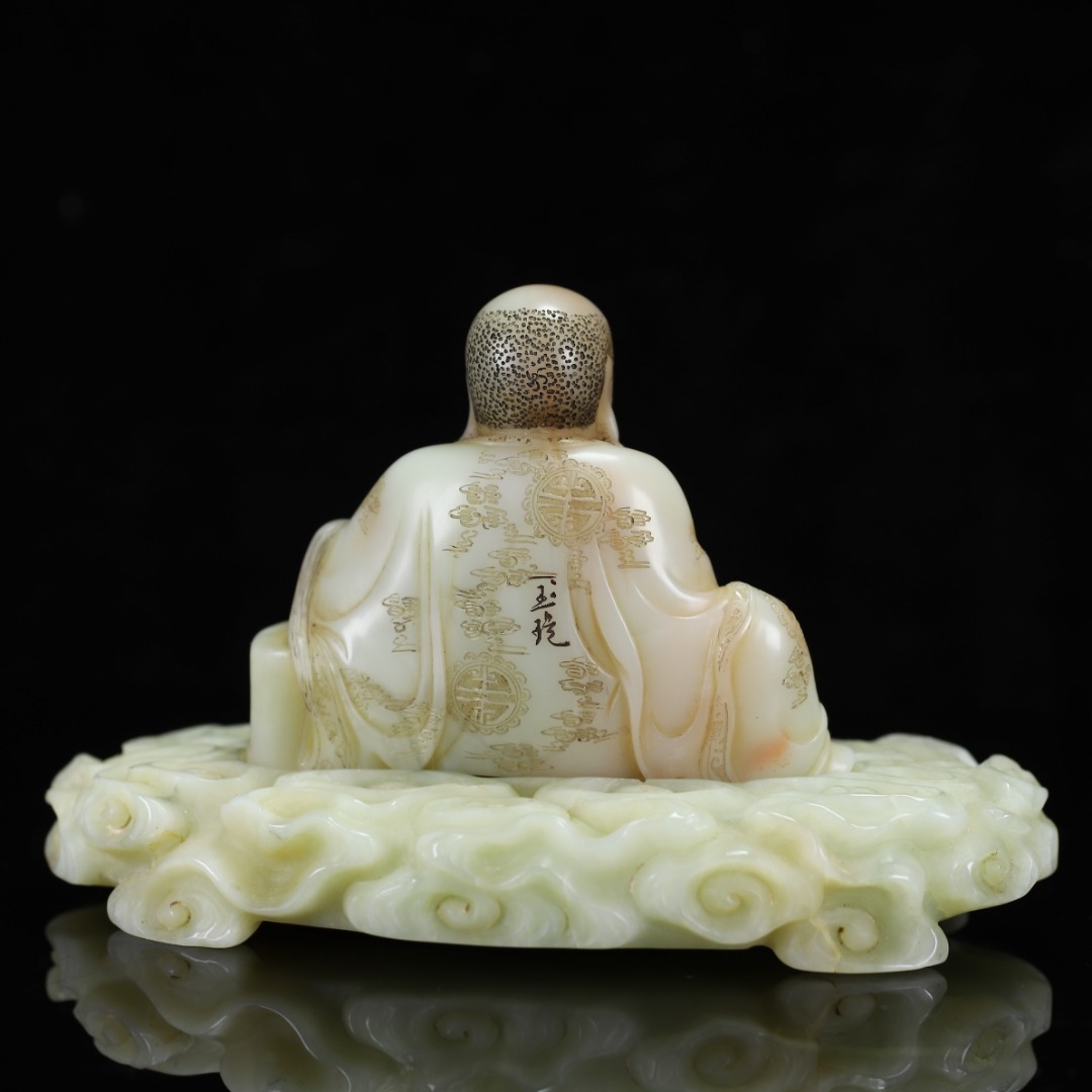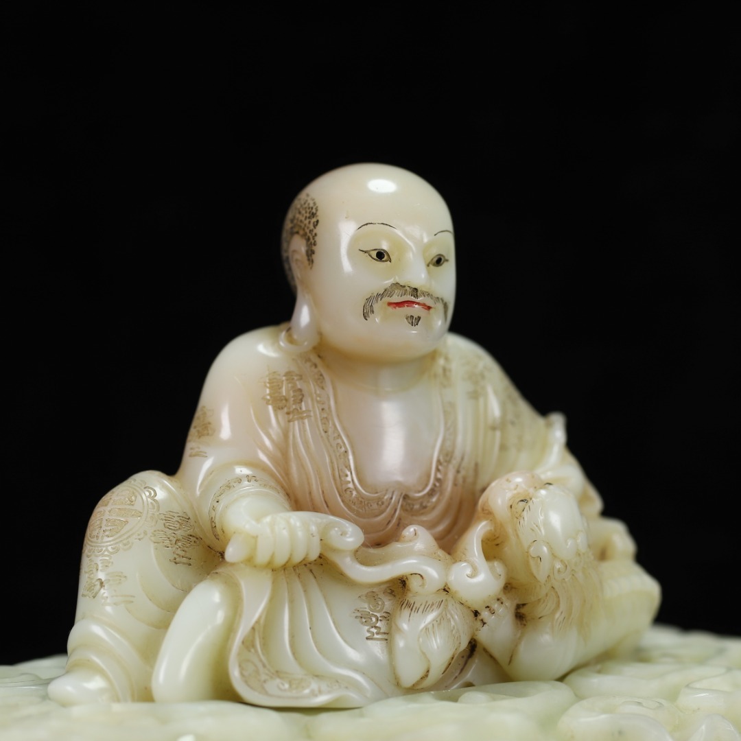 旧蔵 【清代篆刻家 楊玉旋】寿山石・田黄石・白田・羅漢像・寿山石台座 置物 天然石 手彫 篆刻 極細工 中国古玩 骨董品 古美味 210