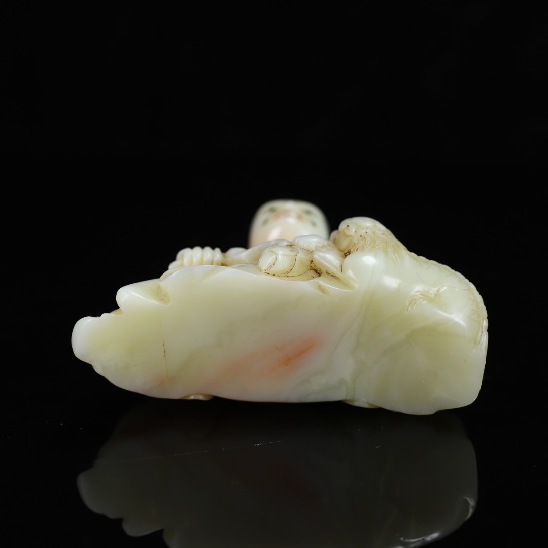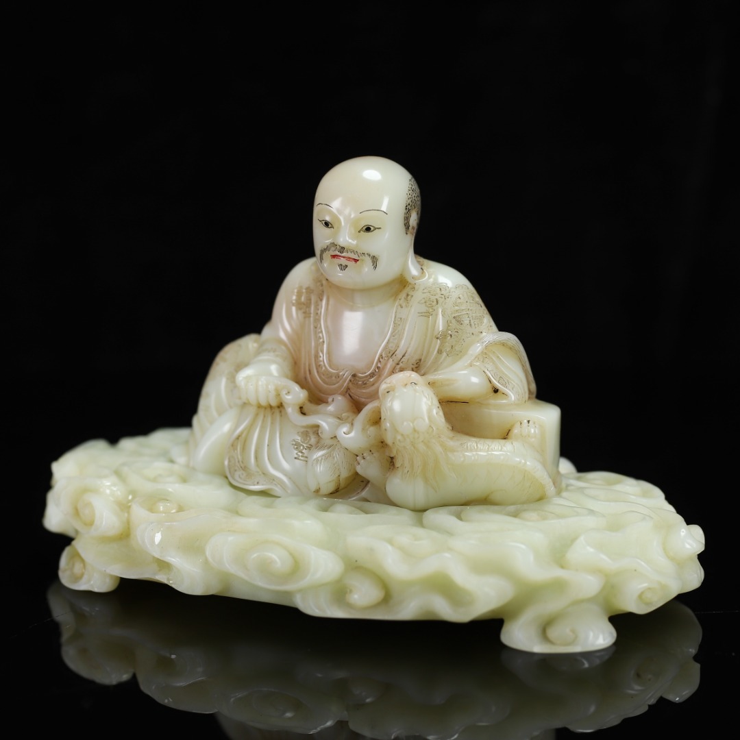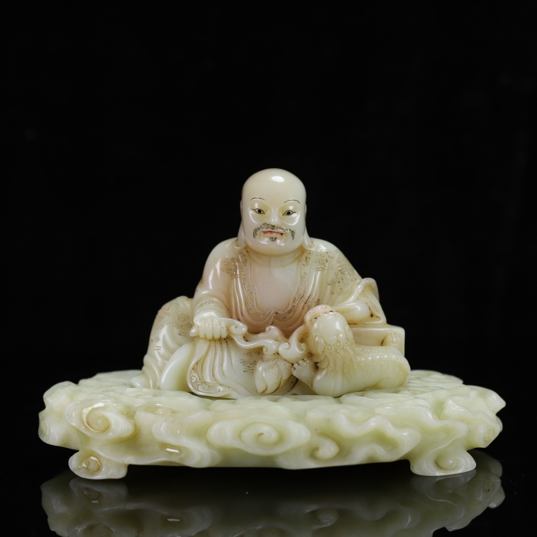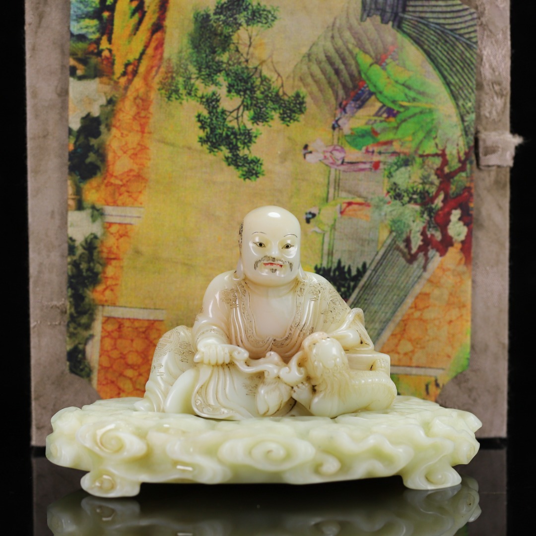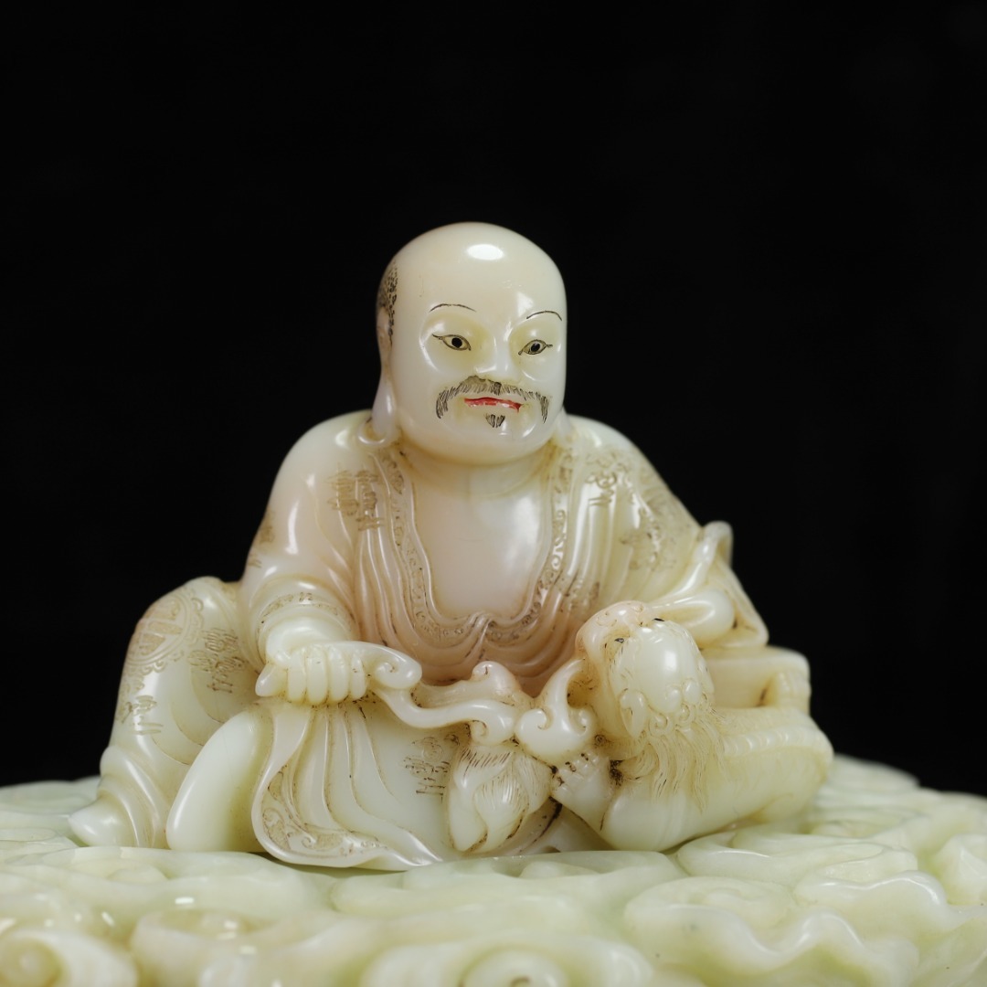 旧蔵 【清代篆刻家 楊玉旋】寿山石・田黄石・白田・羅漢像・寿山石台座 置物 天然石 手彫 篆刻 極細工 中国古玩 骨董品 古美味 210