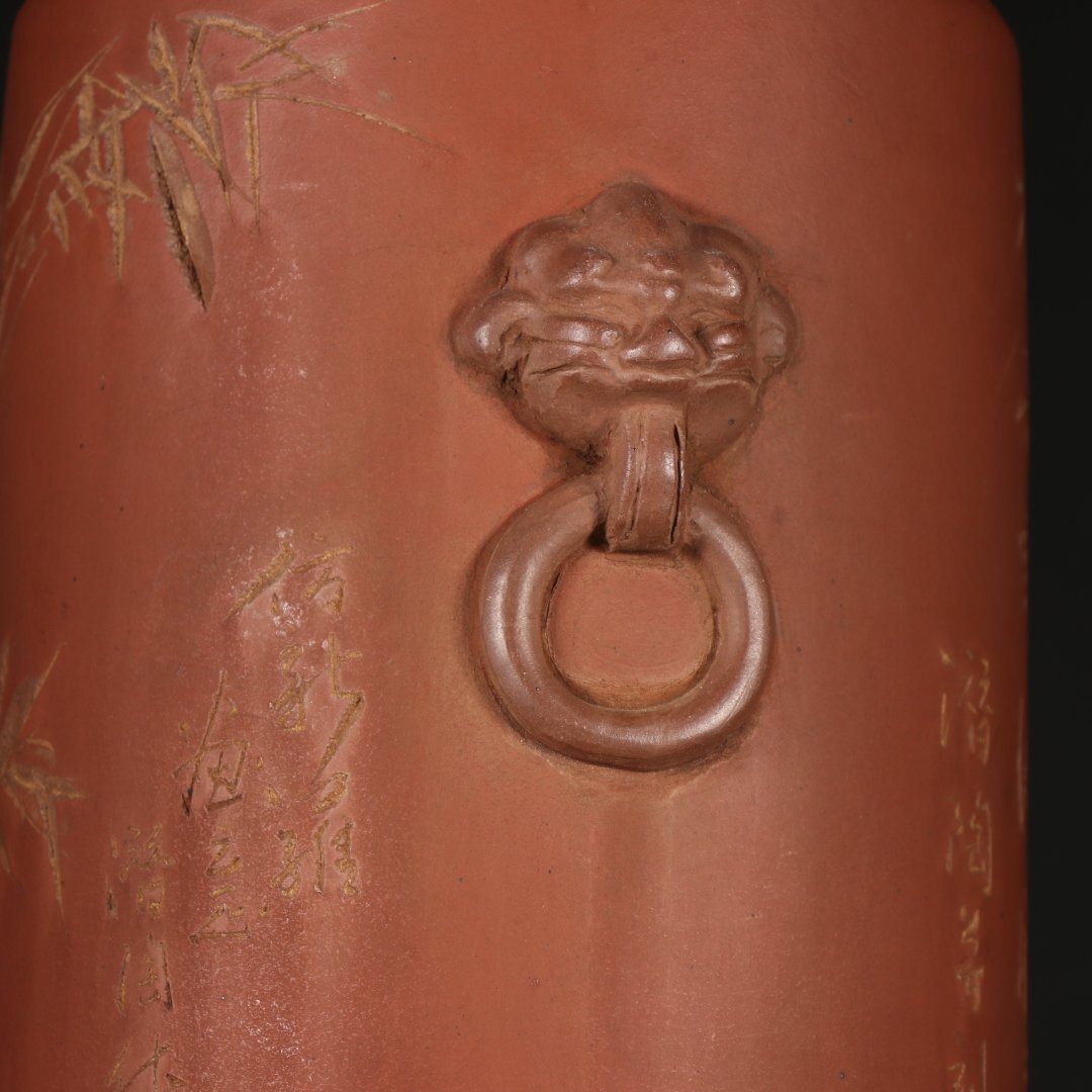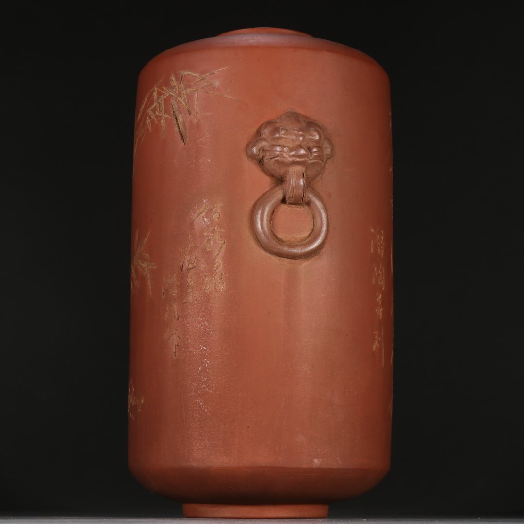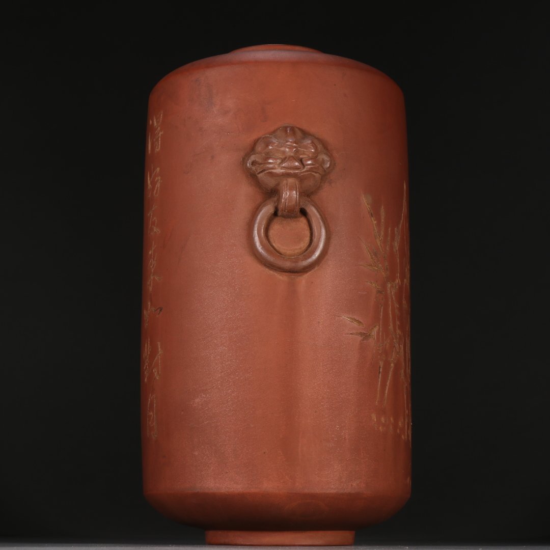 【安】清時代 潜陶製款 竹節漢詩紋罐一対 宜興紫砂 極細工 古置物 古擺件 中国古美術 時代物 古董品 313 サイズ(約寸) |
